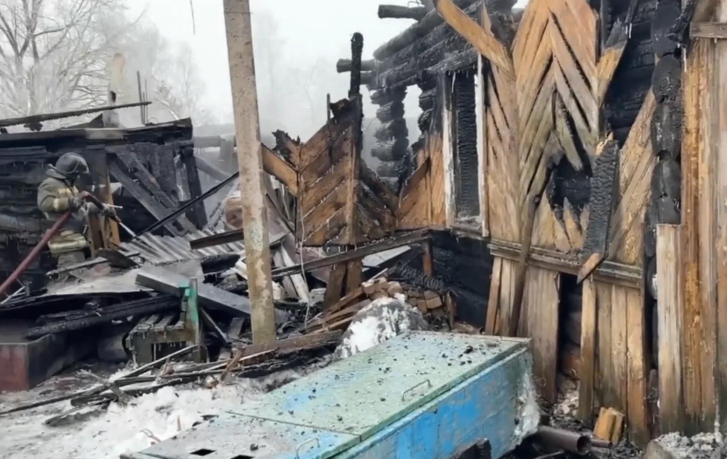 Пламя полностью уничтожило одноэтажный дом и хозяйственную постройку. На месте работали подразделения 43-й и 42-й пожарно-спасательных частей. Тело женщины обнаружили при разборе завалов.
