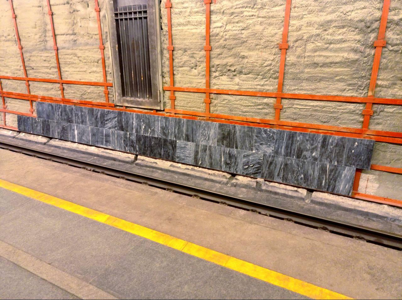 На станции метро «Балтийская» начали облицовку стен плитами из натурального камня