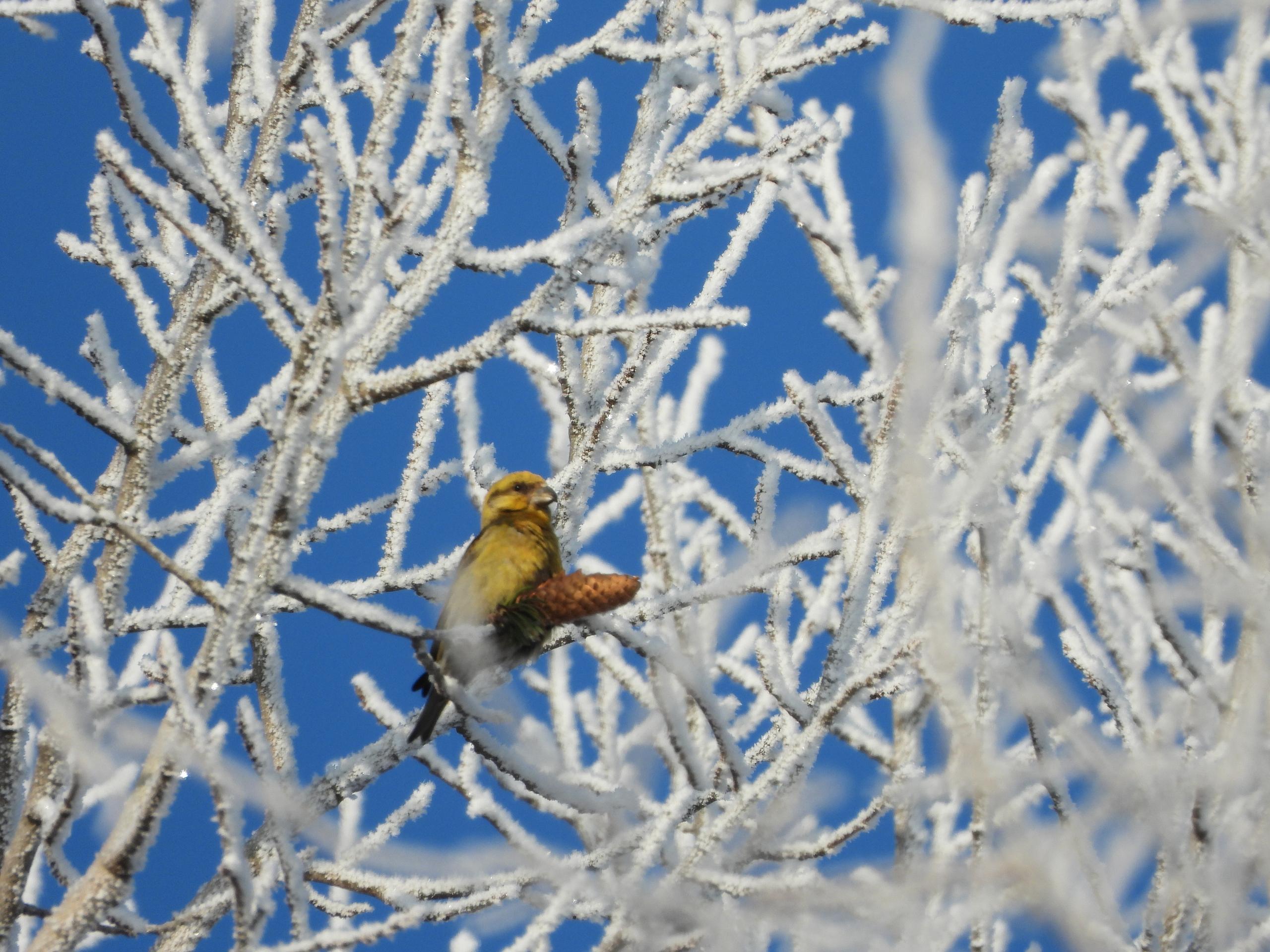 Сотруднику заповедника Андрею Дмитриеву посчастливилось наблюдать необычное поведение одного из таких пернатых гурманов. Птицу с добычей застали не на привычной еловой или сосновой ветке, где обычно проходят трапезы, а на лиственном дереве. Оказалось, что клест проявил чудеса сообразительности: не желая делиться шишкой с сородичами, он попросту унес ее подальше от конкурентов и спокойно отобедал в уединении, подальше от шумной компании.