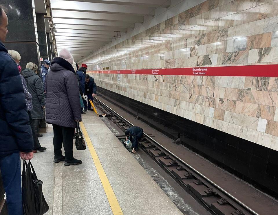 Пьяный петербуржец упал на пути с платформы станции метро «Проспект Ветеранов»
