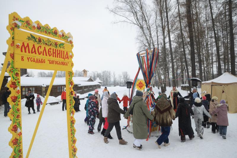 В этнопарке «Усадьба Богословка» во Всеволожском районе Ленинградской области проводили Масленицу в эстетике XIX века.