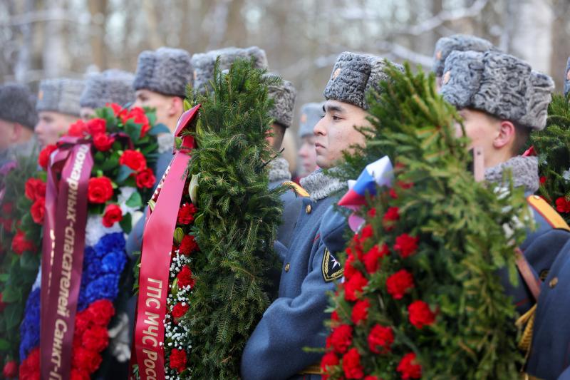 Фото: как на Серафимовском кладбище Петербурга почтили память погибших пожарных