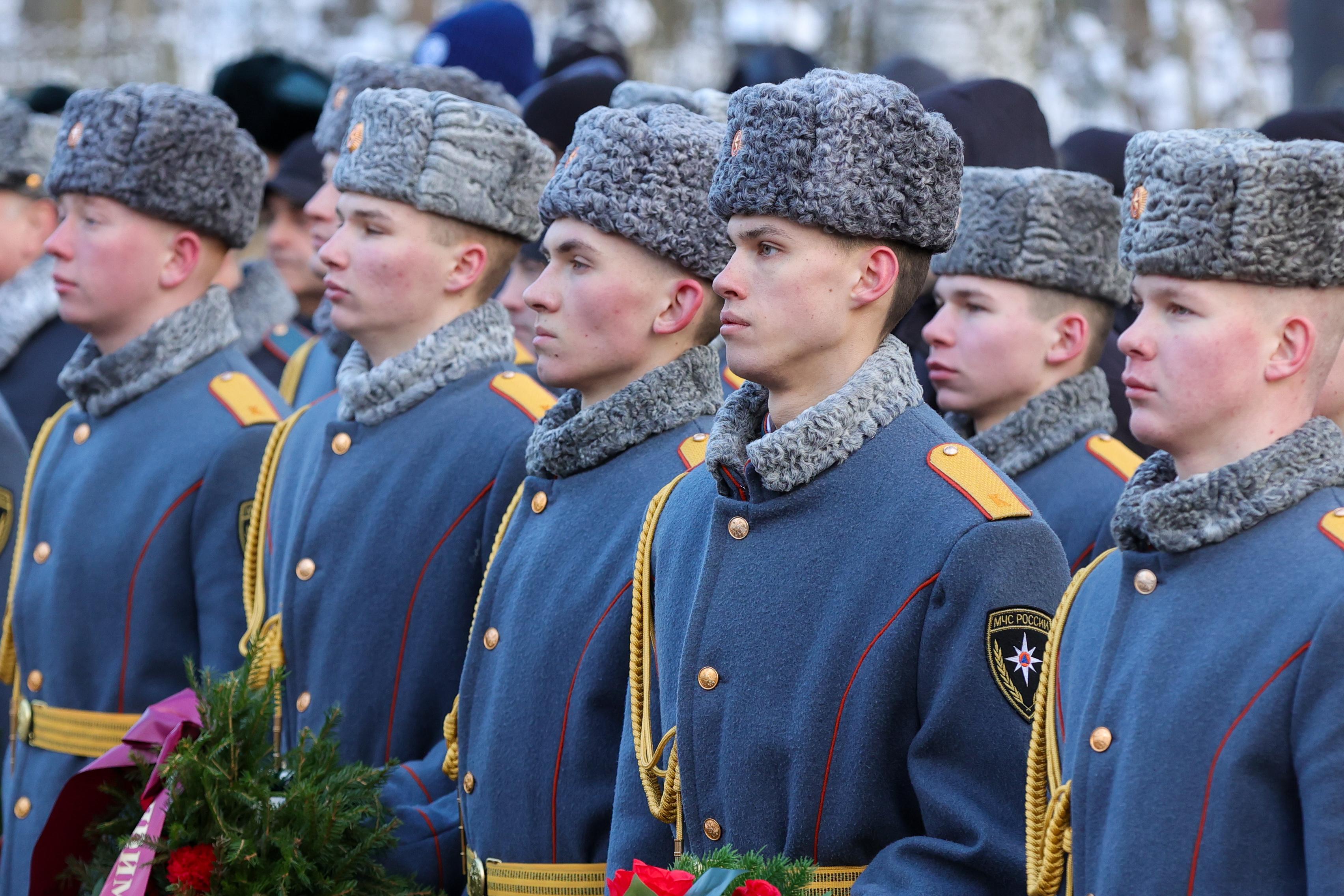 Фотокорреспондент «Петербургского дневника» поделился снимками, как на Серафимовском кладбище Петербурга почтили память погибших пожарных.