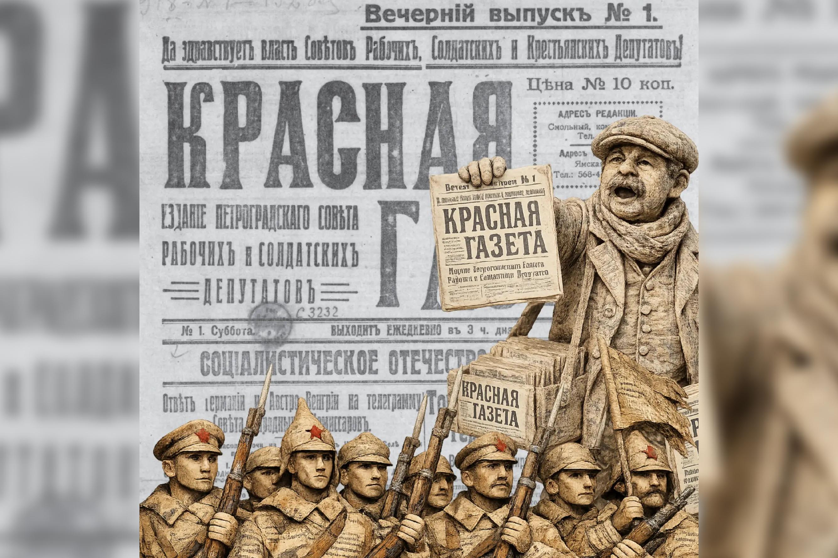 Эта история начинается в тяжелой связке войны и тревоги. Первая мировая еще не отпускает: мирные переговоры срываются, 18 февраля начинается германское наступление, и напряжение быстро становится почти бытовым состоянием. В такой атмосфере вечерняя газета дает людям ясность хотя бы по одному вопросу: что происходило на фронте за минувший день. Первый вечерний выпуск «Красной газеты» сразу передает атмосферу февраля 1918-го. Это номер, написанный на высокой скорости и в ощущении крайней ставки. В нем – мобилизационная интонация и ожидание решений, от которых зависит ближайшее завтра. В центре внимания – война и мир, внешние условия, позиция власти, необходимость действовать быстро и согласованно.