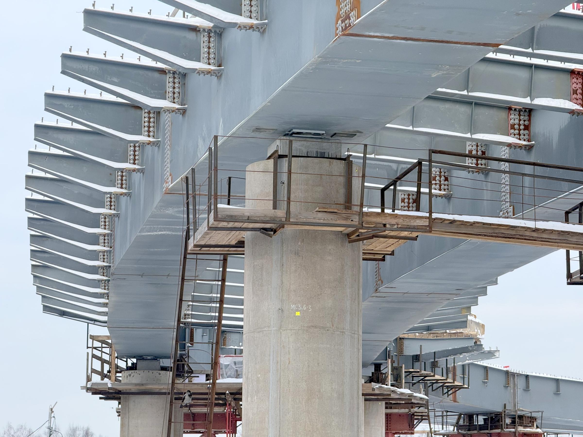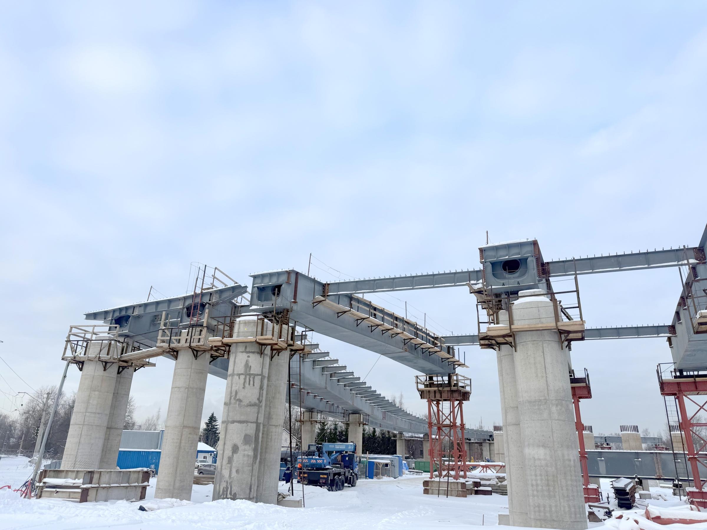 На севере Санкт-Петербурга продолжается строительство магистрали М-32 – ключевого инфраструктурного проекта, реализуемого в рамках приоритета «Удобный общественный транспорт». Как сообщил губернатор Александр Беглов, в настоящее время специалисты завершают монтаж металлических конструкций пролетных строений на первом из восьми съездов будущей двухуровневой развязки с Приморским шоссе в районе «Лахта Центра». Балки уже установлены на всех доступных опорах, сформировав профиль сооружения.