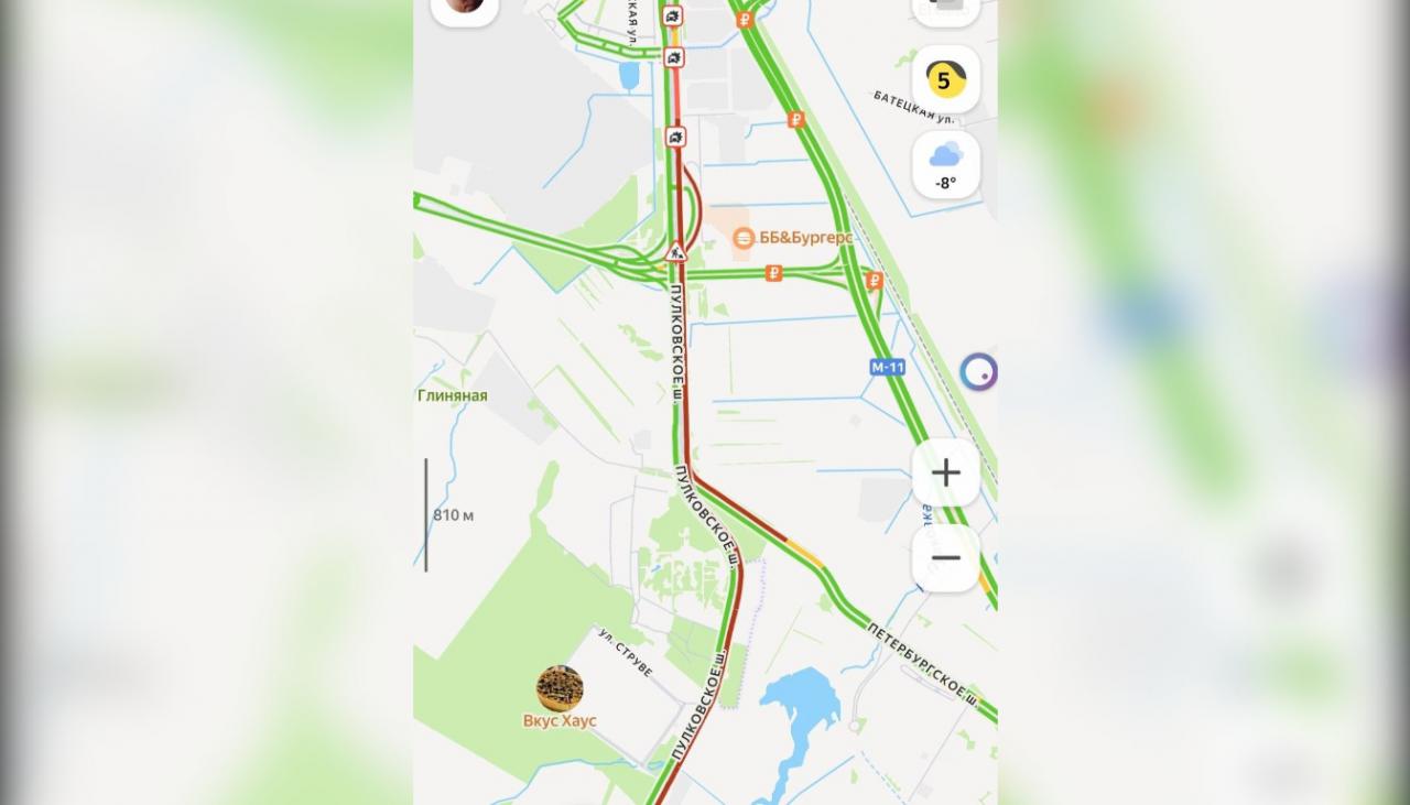 Пулковское шоссе сковали «бордовые» пробки утром 26 февраля