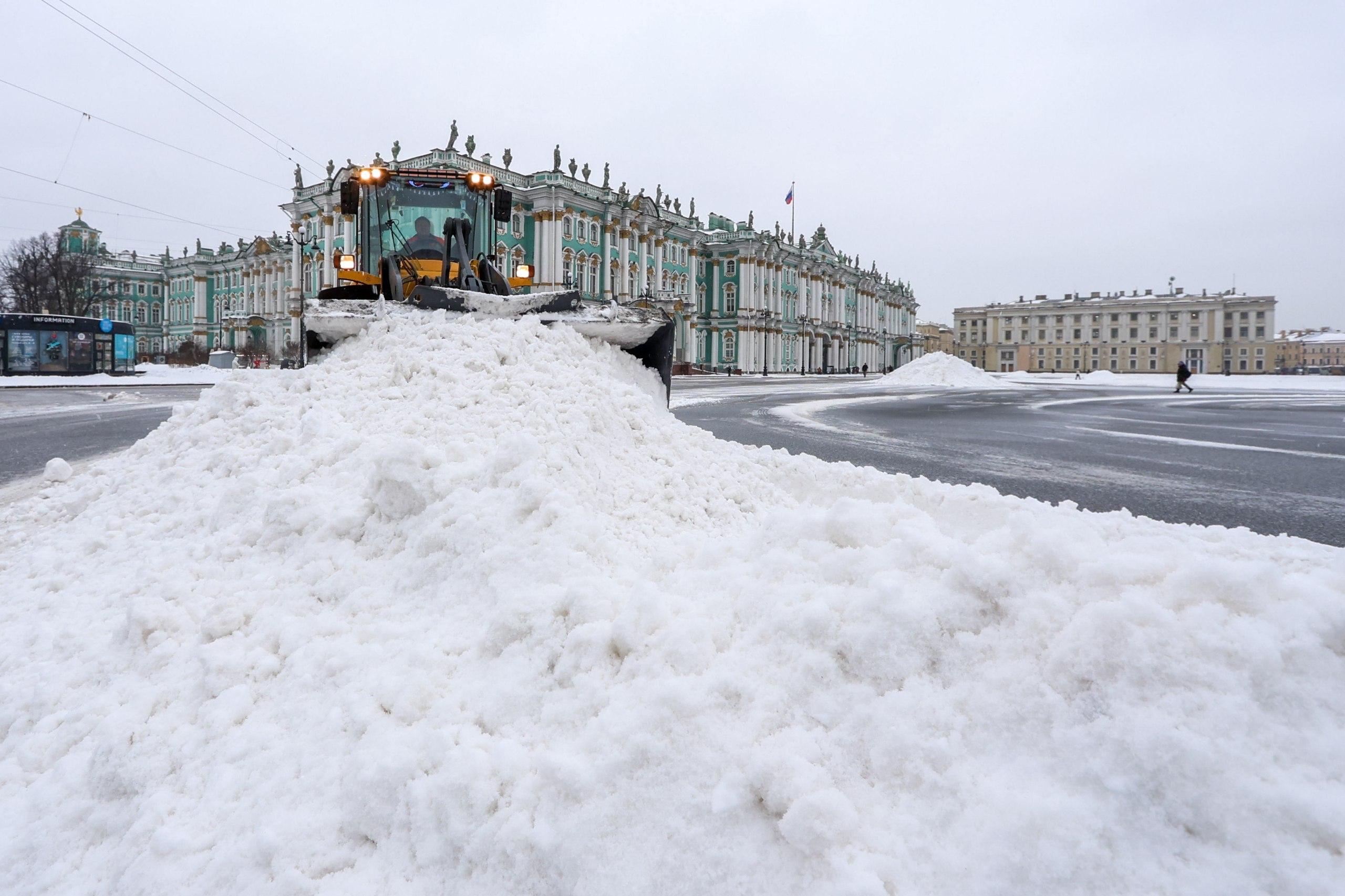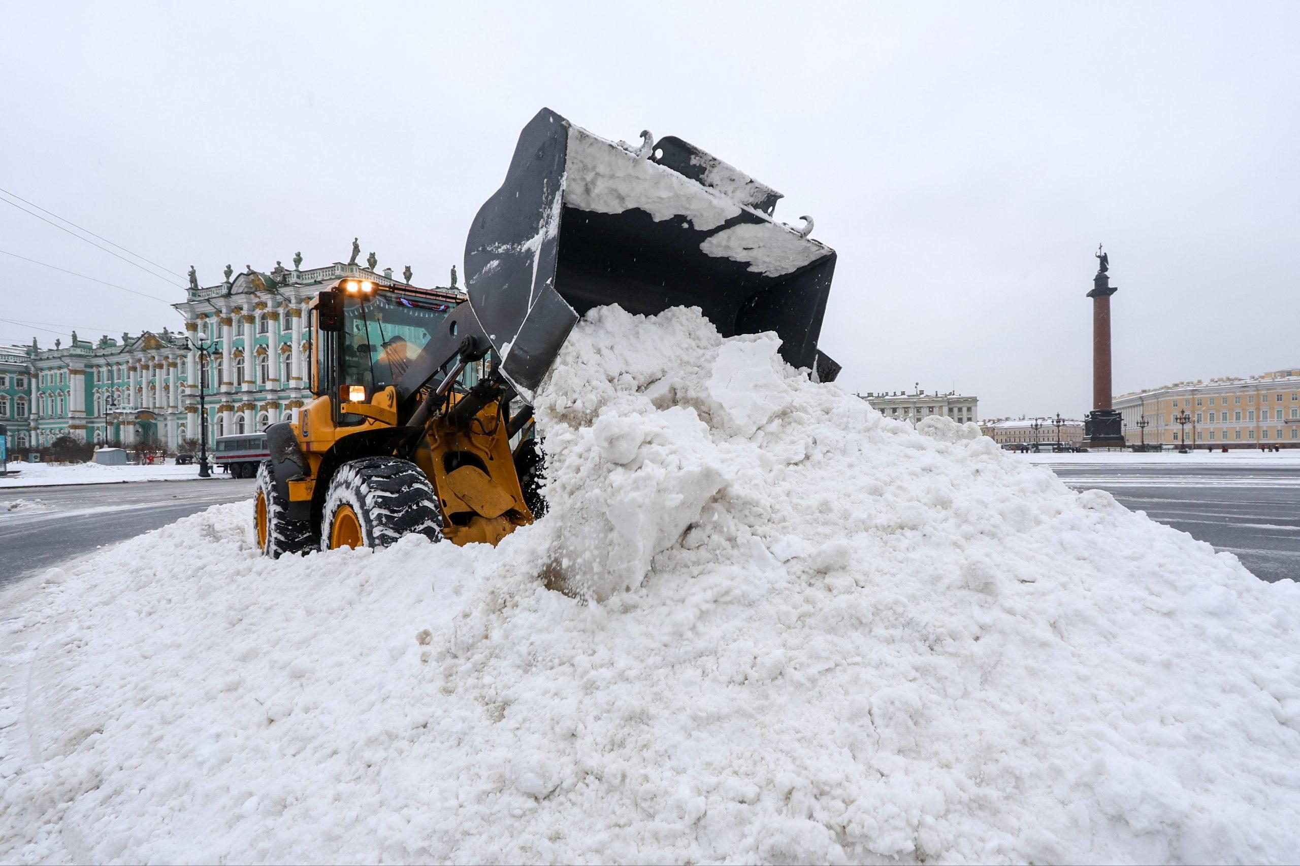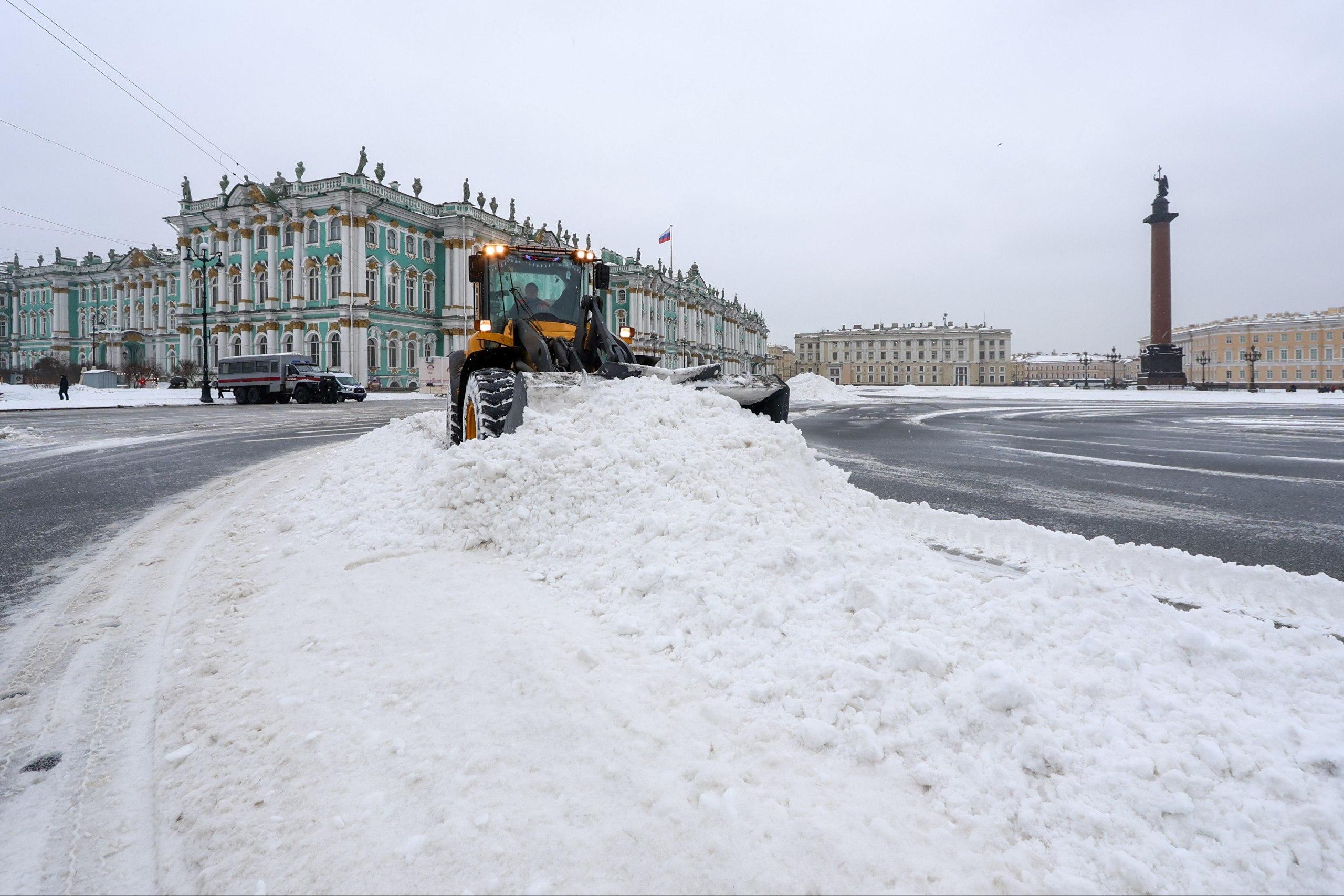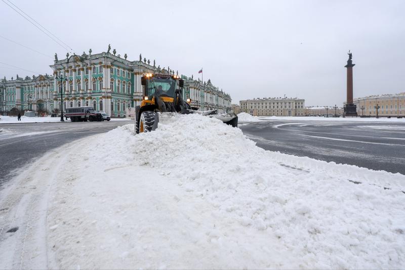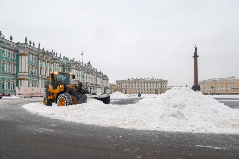 Фото: в Петербурге убирают снег на Дворцовой площади