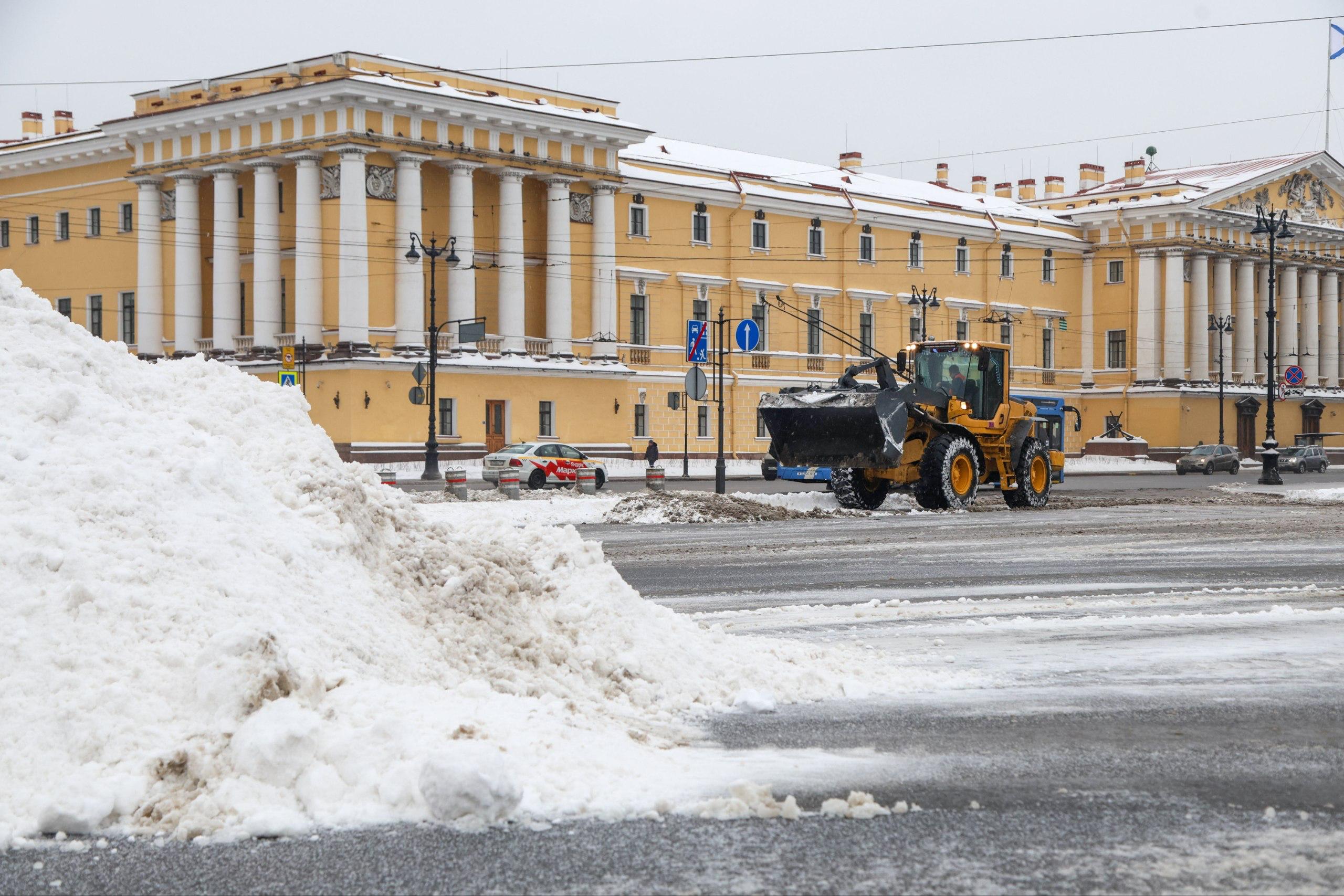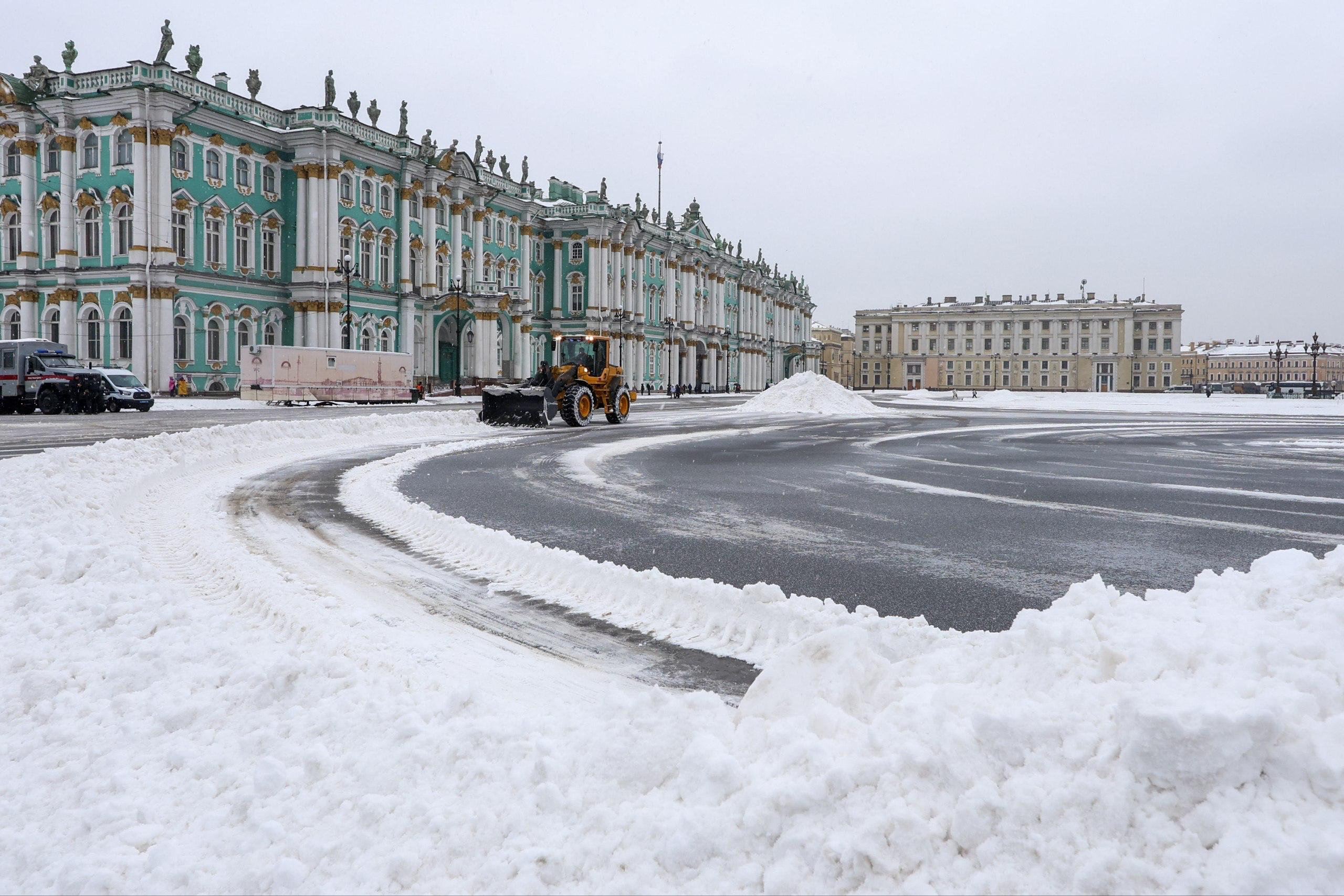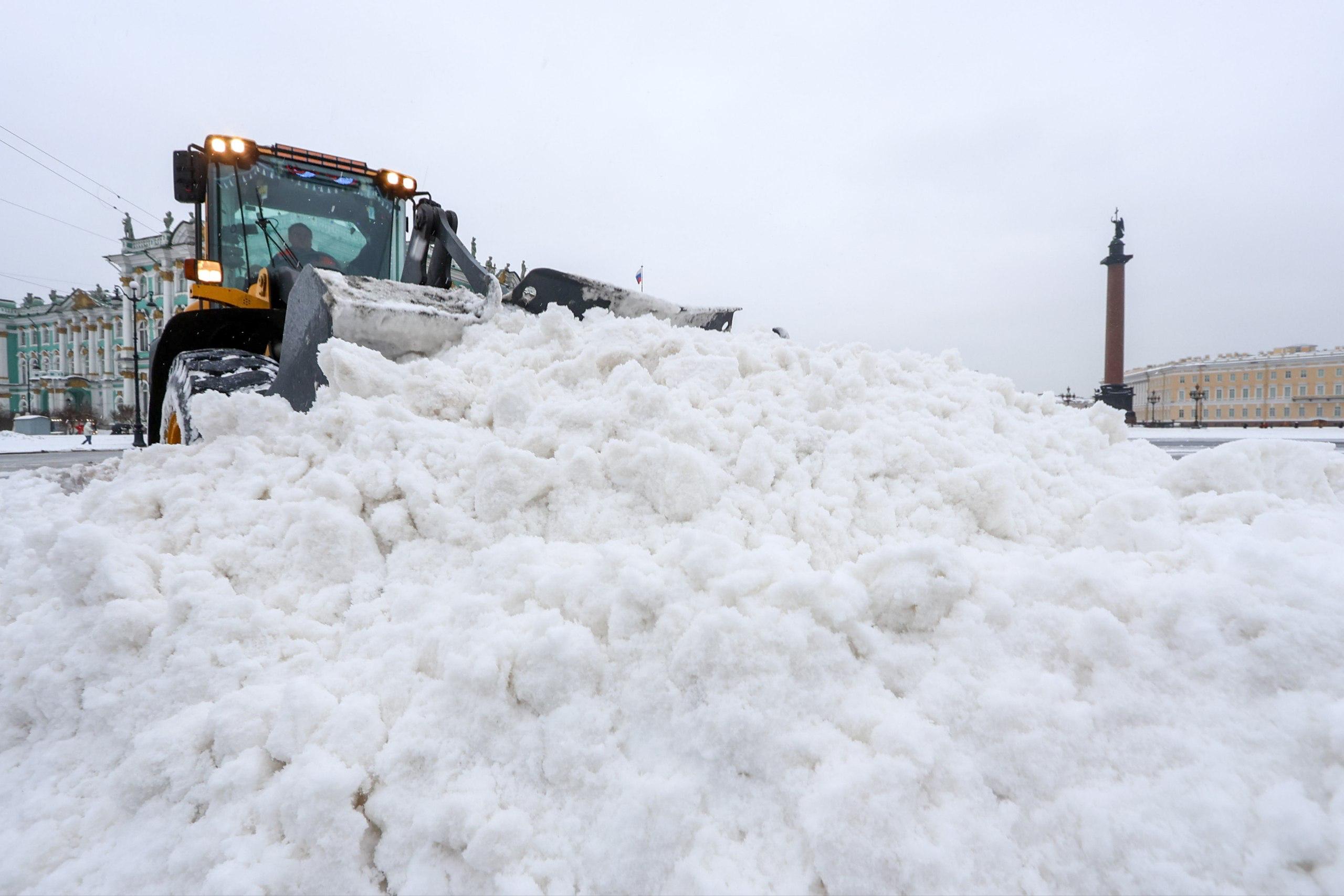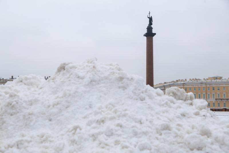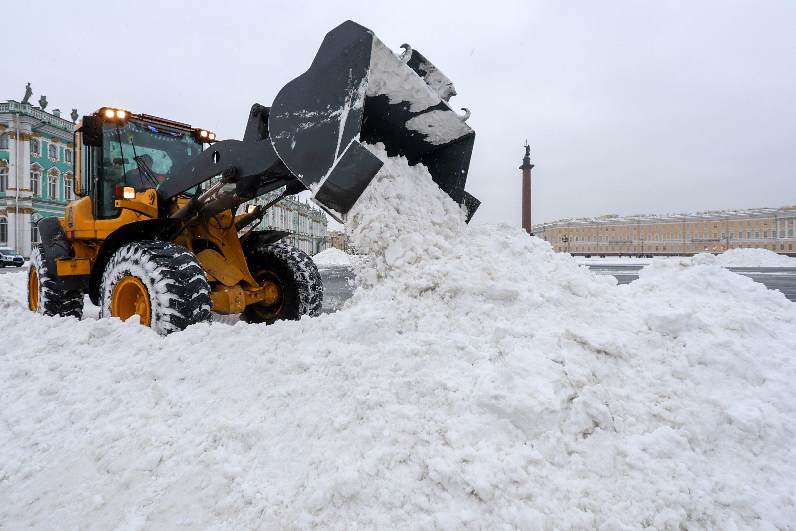 Фото: в Петербурге убирают снег на Дворцовой площади