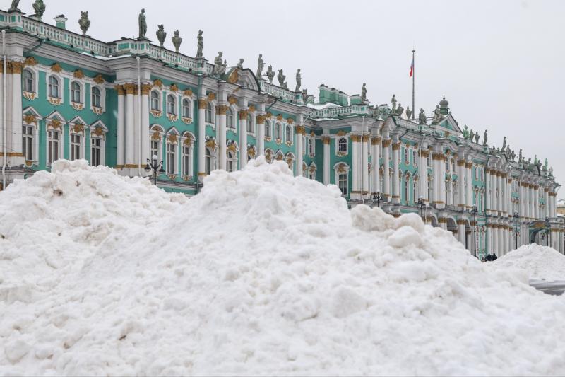 В Петербурге продолжают бороться с последствиями сильного снегопада – дороги и тротуары чистят во всех районах города. Уборку снега на Дворцовой площади запечатлел фотограф «Петербургского дневника».