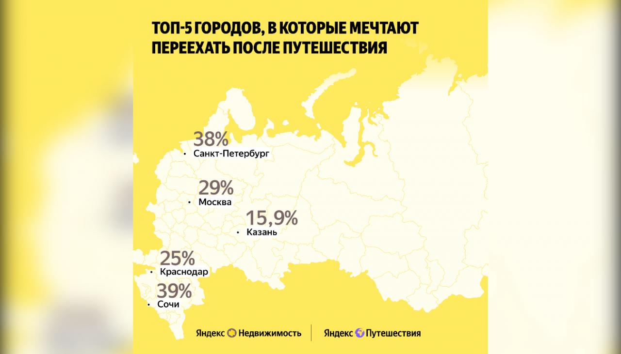 По данным экспертов, 89% россиян после поездки в другой город испытывают желание задержаться в нем подольше. При этом половина опрошенных рассматривает вариант временного проживания, а 40% мечтают о переезде навсегда. Санкт-Петербург оказался в лидерах этого рейтинга: 38% респондентов признались, что готовы сменить свой регион на берега Невы и просторы Ленобласти. В этом списке Северная столица конкурирует лишь с солнечным Сочи (39%).