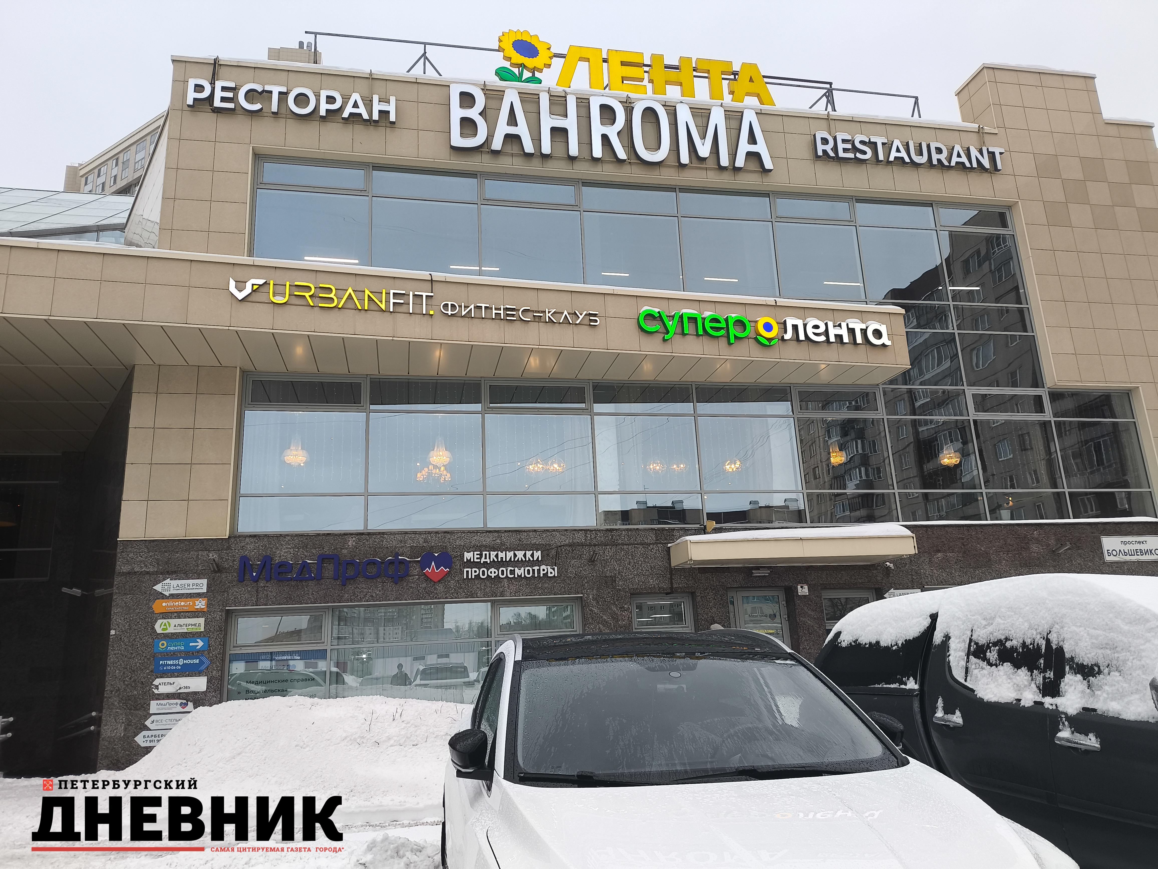Речь о здании по адресу: проспект Большевиков, 7, к. 2. В нём среди прочего находятся «Супер Лента», ресторан Bahroma и фитнес-клуб Urbanfit.