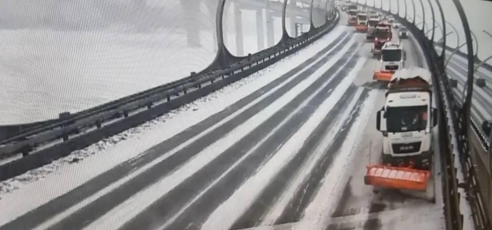 «Сразу по факту начала осадков стартовала работа по уборке снега плугами и подметанию дороги щетками. Всего за вечер и ночь было выполнено девять полных кругов уборки и обработки противогололедными материалами. Каждая из машин прошла до 500 километров. Израсходовано около 350 тонн противогололедных материалов», – говорится в сообщении.