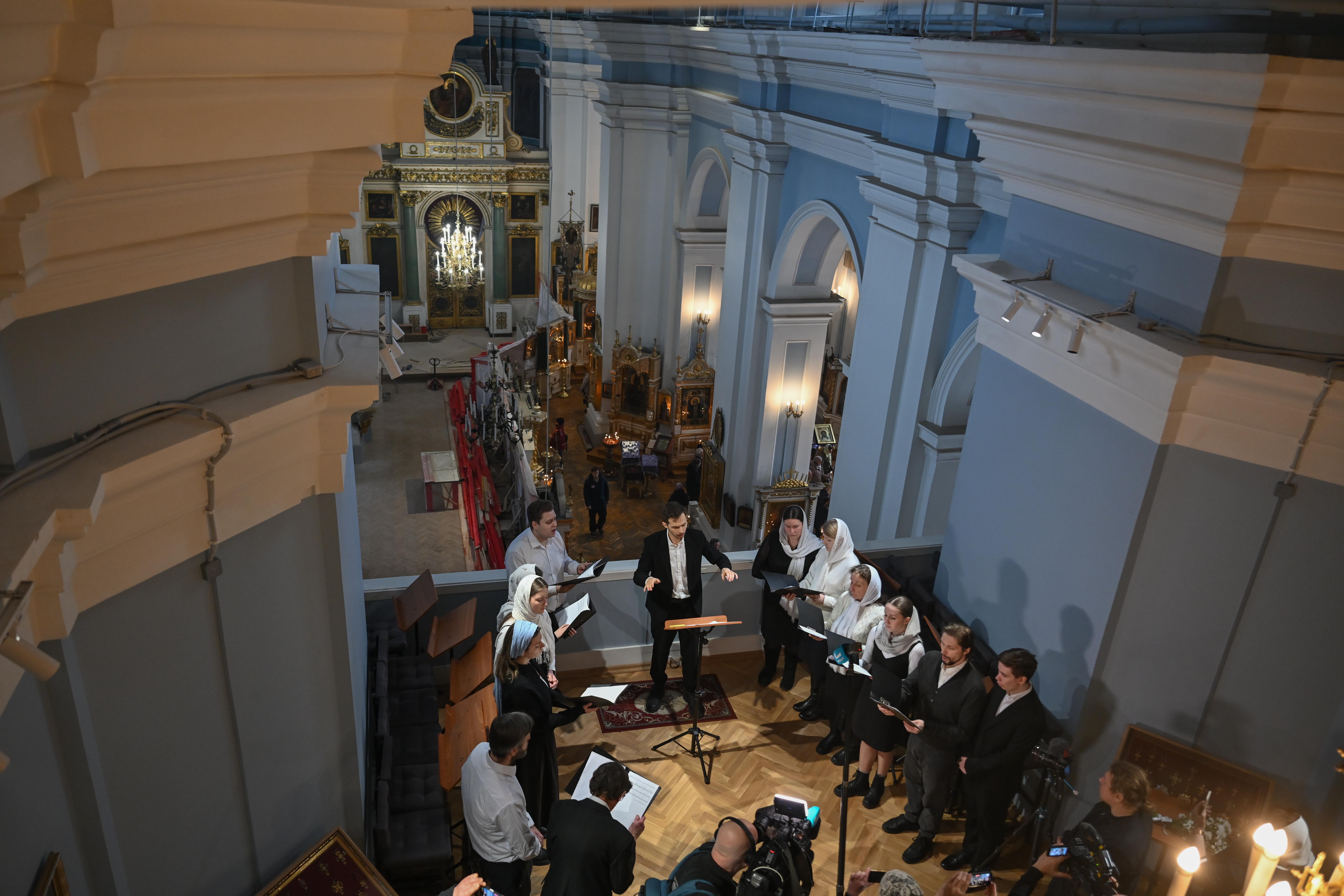 Памятную доску открыли на хорах собора – именно там, где в годы блокады, на Пасху 1942 года, усилиями регента был собран хор из истощенных, но не сломленных духом ленинградских певчих. В тяжелейших условиях осажденного Ленинграда они продолжали свое дело, исполняя пасхальные песнопения под вражескими обстрелами. Это служение стало истинным свидетельством духовной силы ленинградцев и их верности православной церковной традиции.