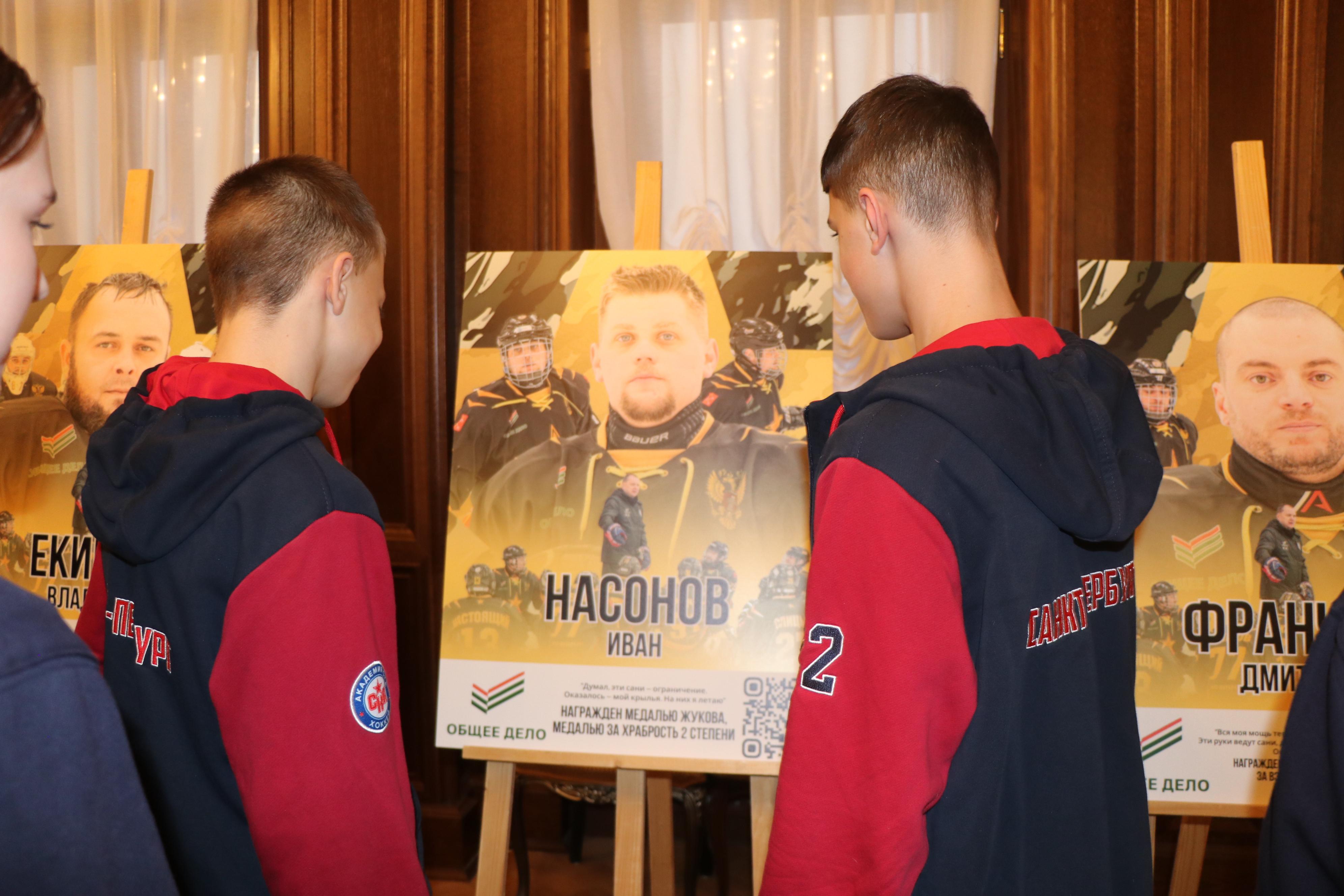Одними из первых выставку увидели юные спортсмены из хоккейного клуба «СКА-Звезда». Для ребят провели экскурсию, где они познакомились с портретами и историями тех, кто, потеряв здоровье, не потерял волю к победе.