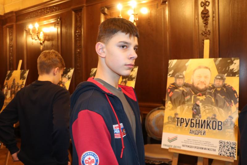 14-летний Дмитрий Прийдун обратил внимание на историю вратаря Владимира Екимова, награжденного орденом Мужества. Уже через несколько месяцев в команде его вызвали в сборную России. Играть в хоккей, сидя на санях, признается мальчик, намного сложнее, чем на ногах. А такие выставки, по его словам, учат главному: «Нужно не сдаваться, даже когда очень тяжело».