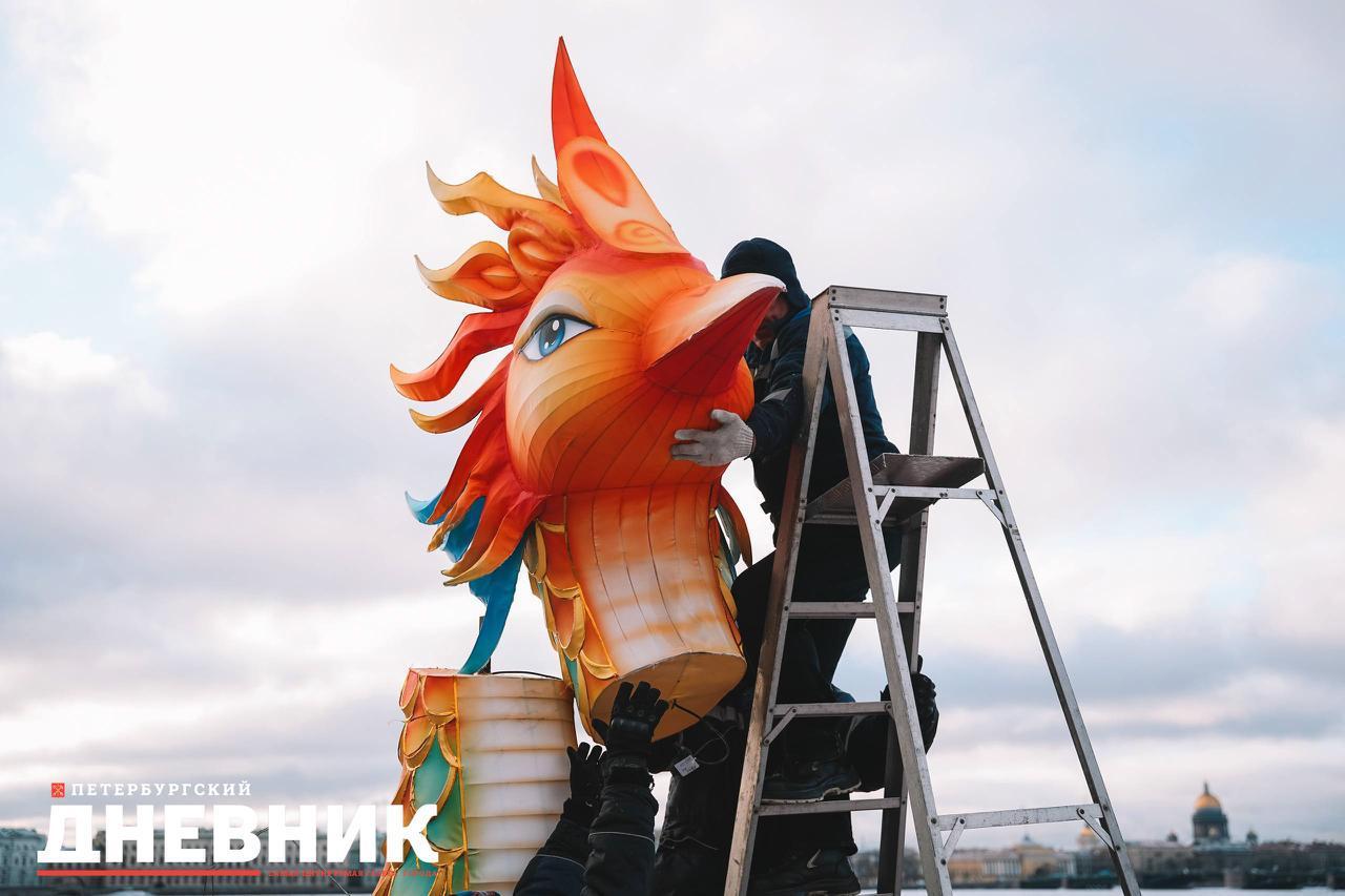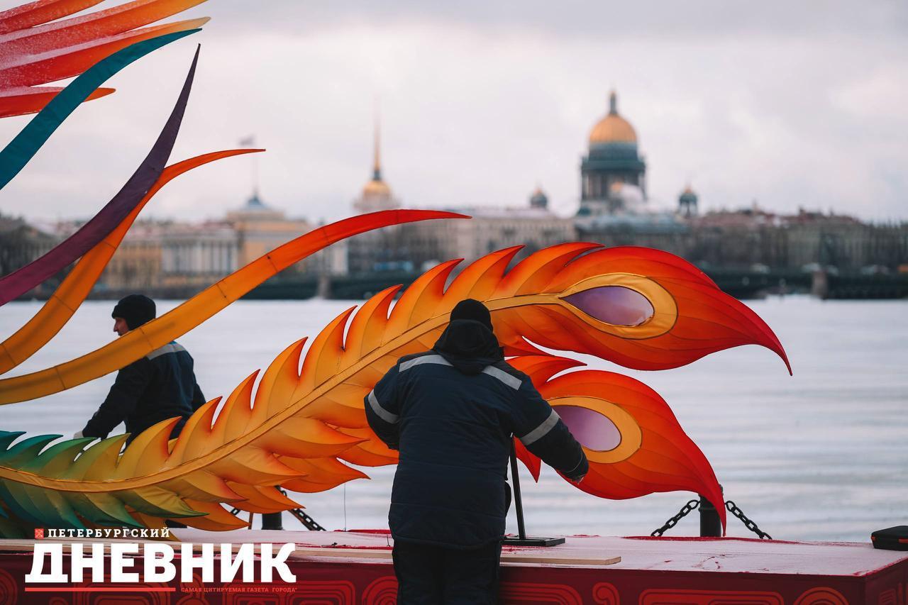 Выставку гигантских китайских фонарей «Счастливый праздник Весны» на стрелке Заячьего острова в Петропавловской крепости открыли 16 февраля в честь китайского Нового года. Она представляла собой четырехметровые световые инсталляции, привезенные из города Цзыгун, провинция Сычуань.