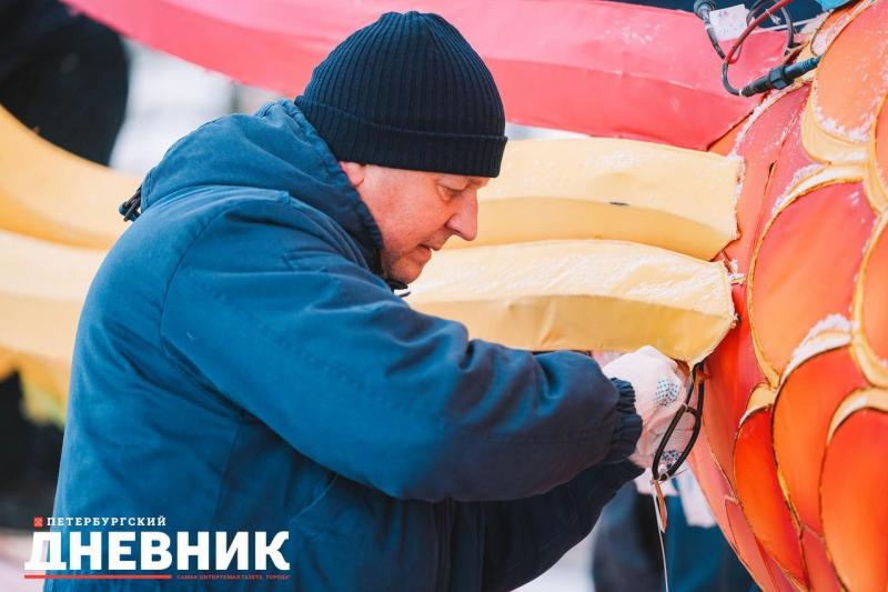 На стрелке Заячьего острова демонтируют выставку «Счастливый праздник Весны»