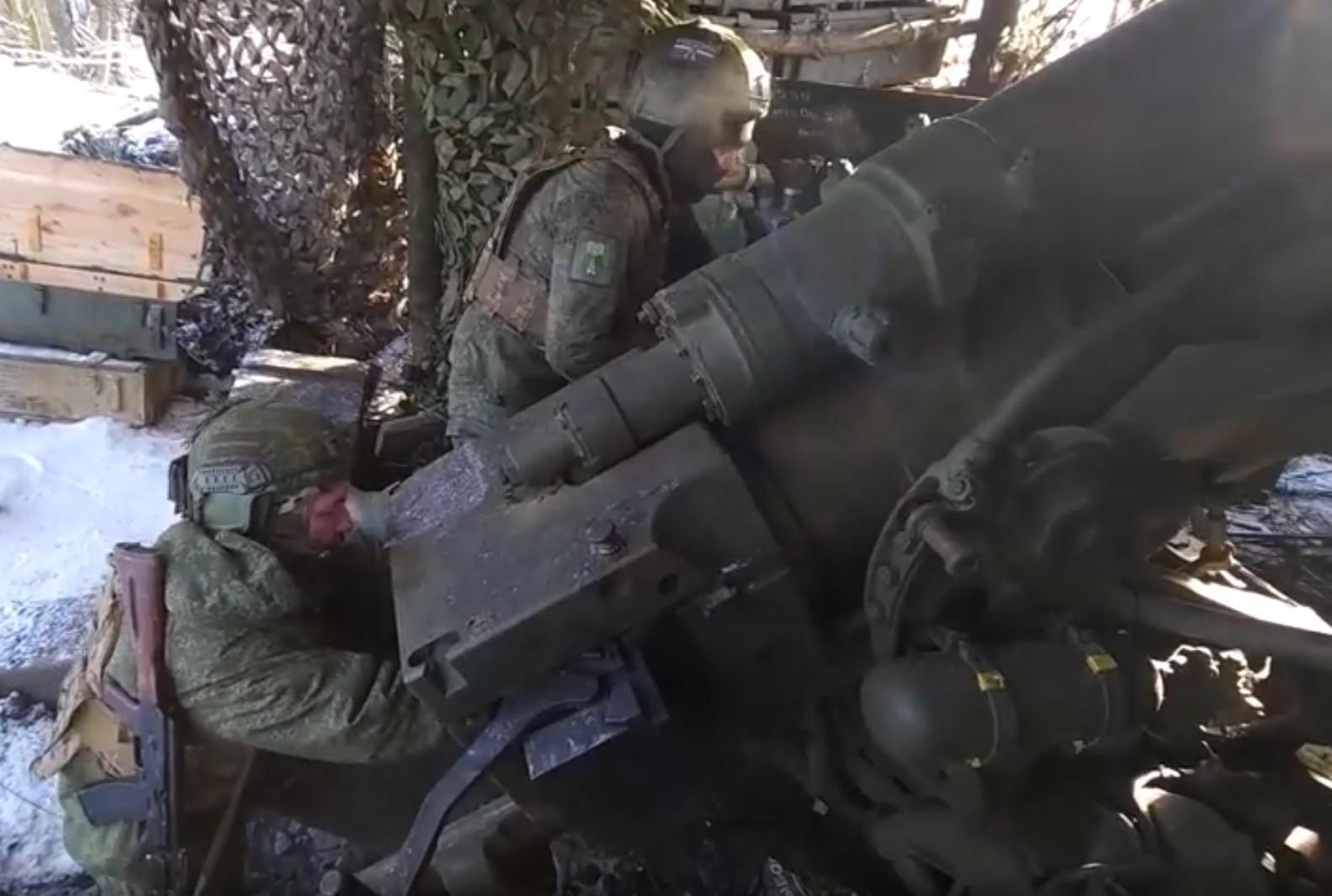 Расчёт буксируемой гаубицы М-46 группировки войск «Север», получив координаты обнаруженных целей от подразделения войск беспилотных систем, в считаные секунды нанёс огневое поражение противнику, уничтожив миномётную позицию и скопление живой силы подразделений ВСУ.