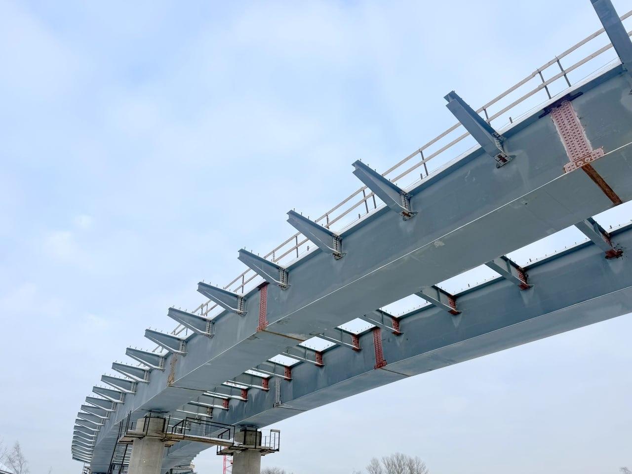 На севере Петербурга возводят транспортную развязку в составе магистрали М-32. Как рассказали в среду, 4 марта, в Комитете по развитию транспортной инфраструктуры, в настоящее время специалисты завершают монтаж металлических конструкций пролетных строений. Речь идет о первом из съездов. Сейчас уже установлены балки на всех доступных опорах. Поэтому есть возможность увидеть масштаб и образ будущего сооружения.