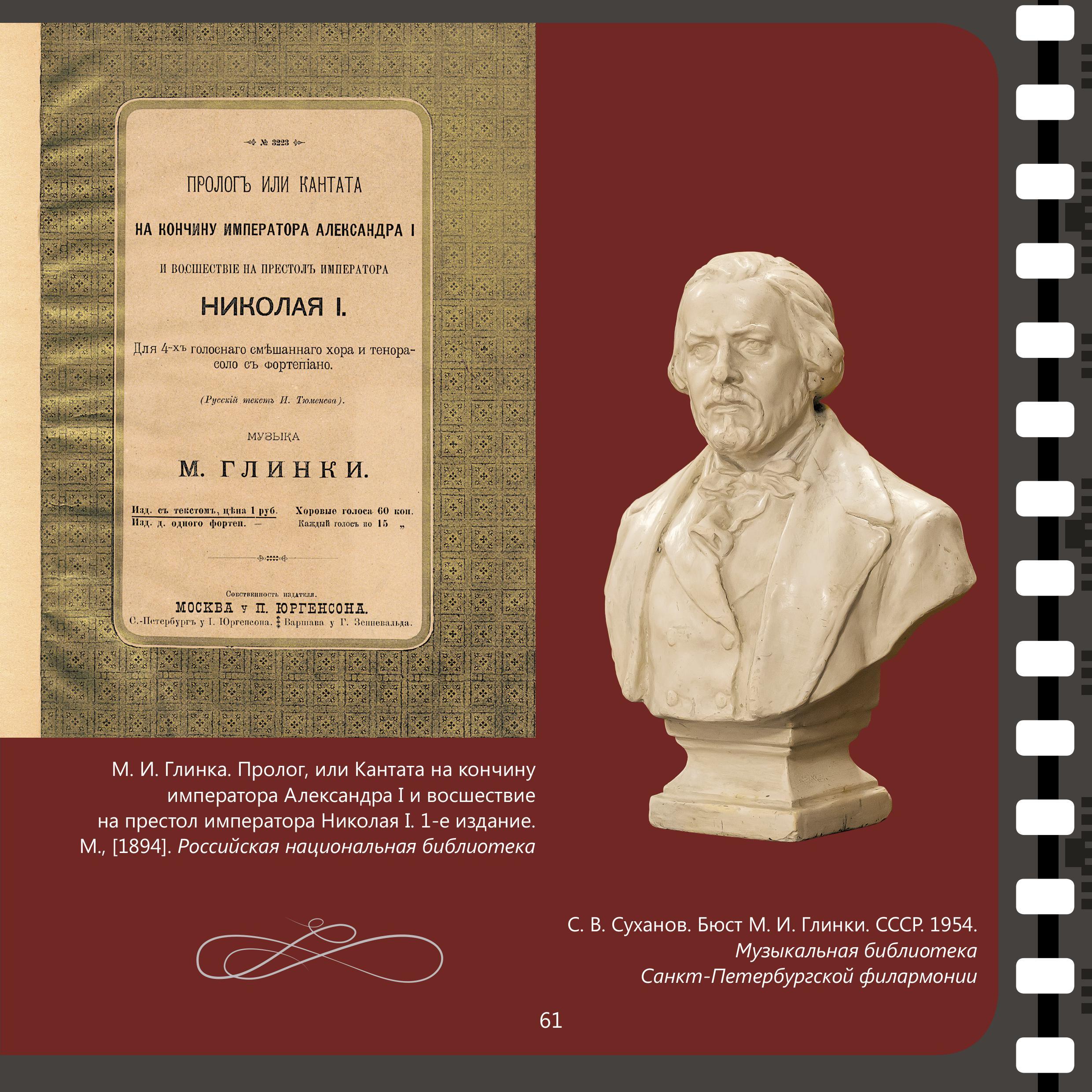 В каталог включены уникальные издания первой половины XIX века из коллекции Музыкальной библиотеки Санкт-Петербургской филармонии. Это произведения, которые слушали и исполняли декабристы, а также ноты маршей полков, участвовавших в событиях на Сенатской площади. Также представлены первые издания композиций, посвященные императорам Александру I, Николаю I и Александру II, и нотные автографы Шапорина и Шварца.