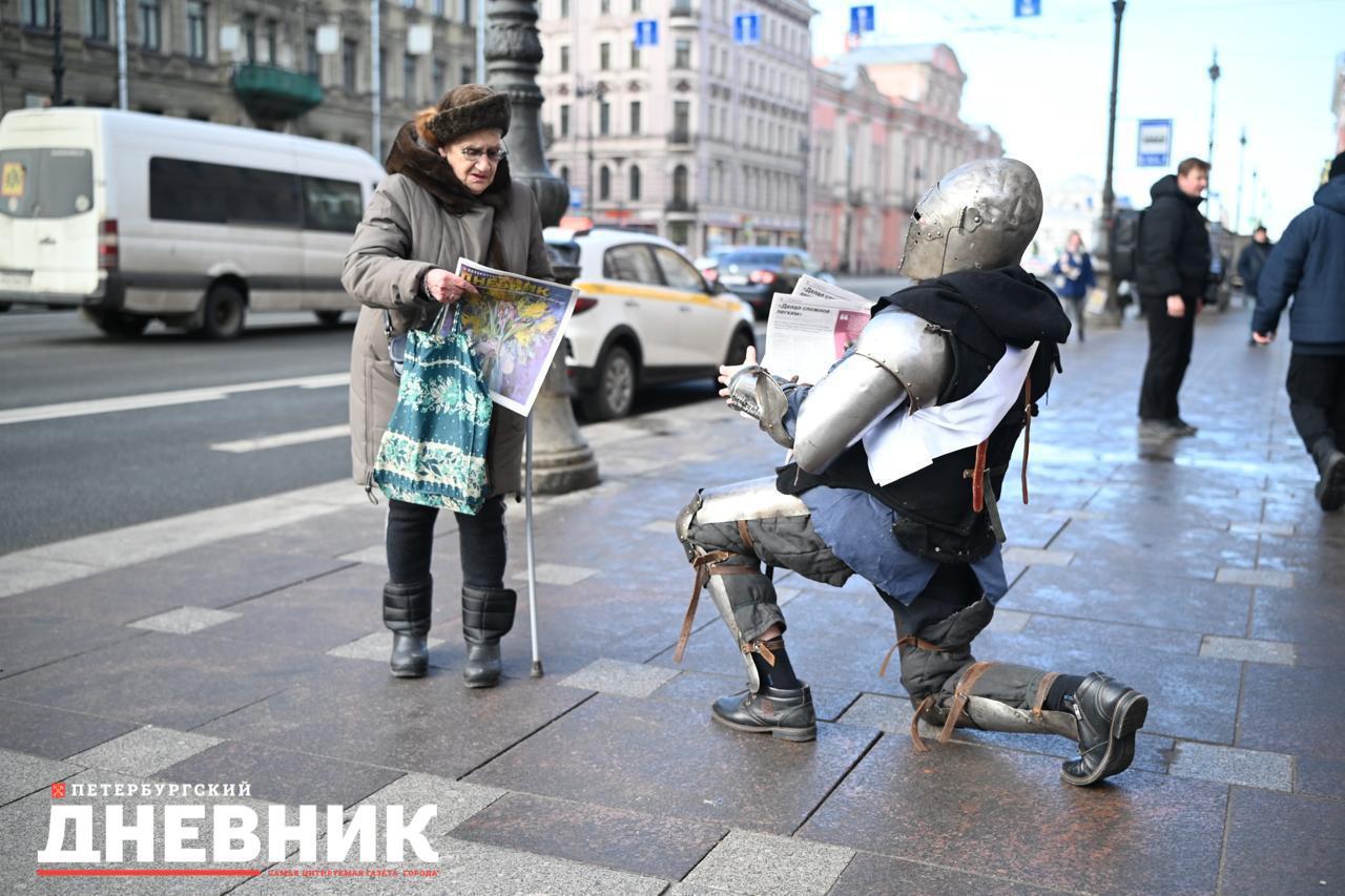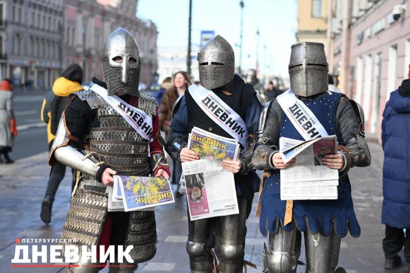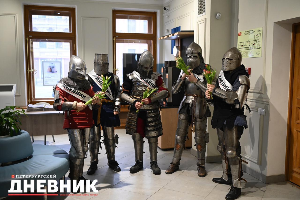 В этот день мужская часть команды «Петербургского дневника» вместе с представителями Клуба исторической реконструкции Политеха Петра Великого, облаченными в исторические доспехи, вручили дамам цветы и специальный ароматизированный выпуск газеты с запахом ириса.