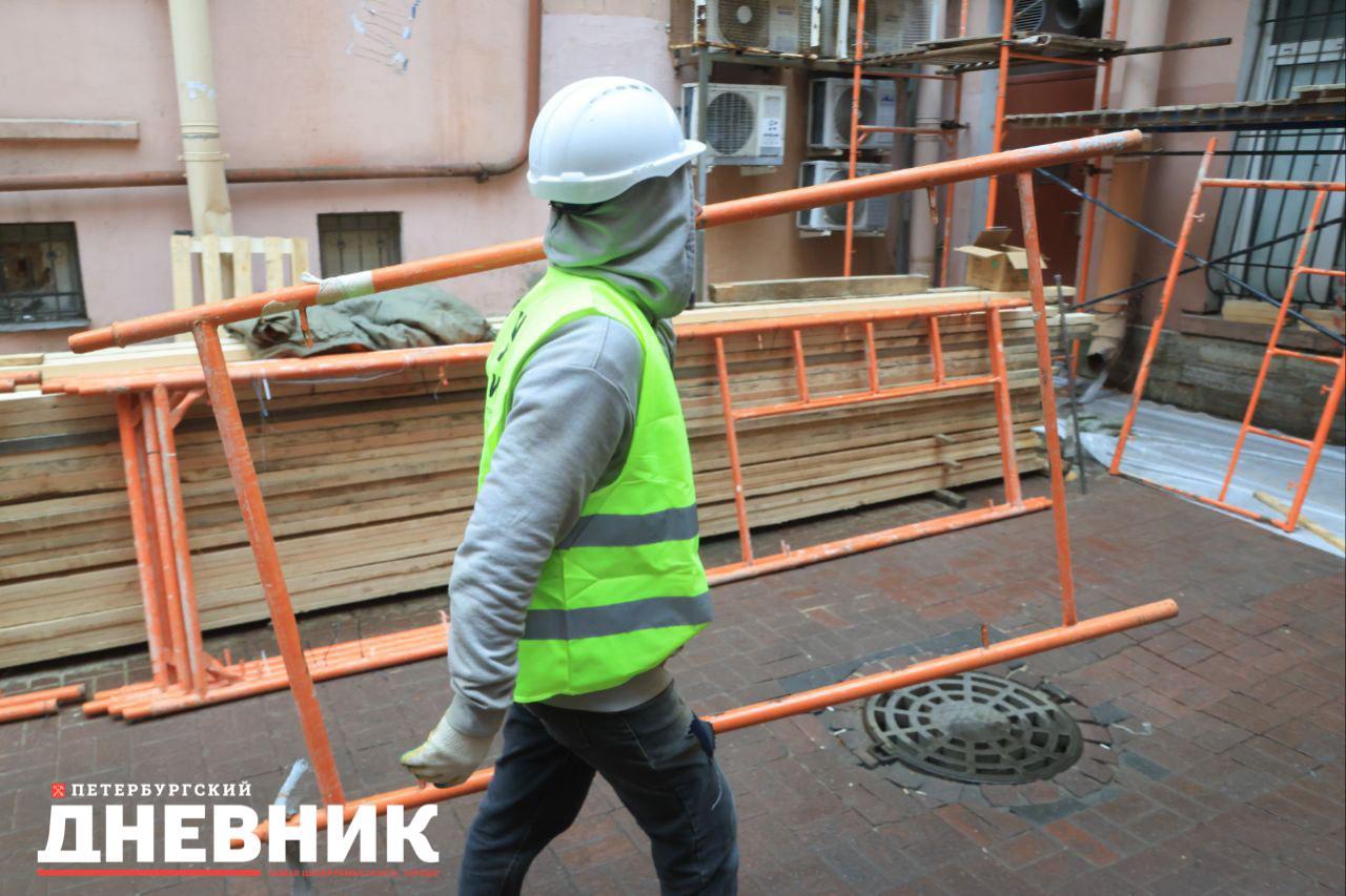 В этом году Фонду капитального ремонта Петербурга предстоит выполнить ремонт 17 фасадов и 12 крыш. Сейчас специалисты ведут подготовительные работы, в частности обустраивают зону производства работ и устанавливают строительные леса.