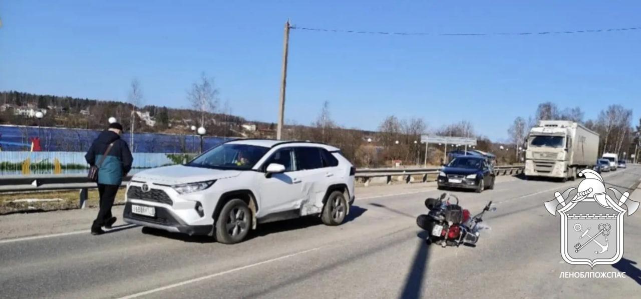 Сегодня днем в Кировском районе Ленинградской области произошло ДТП с участием легковушки и мотоцикла.