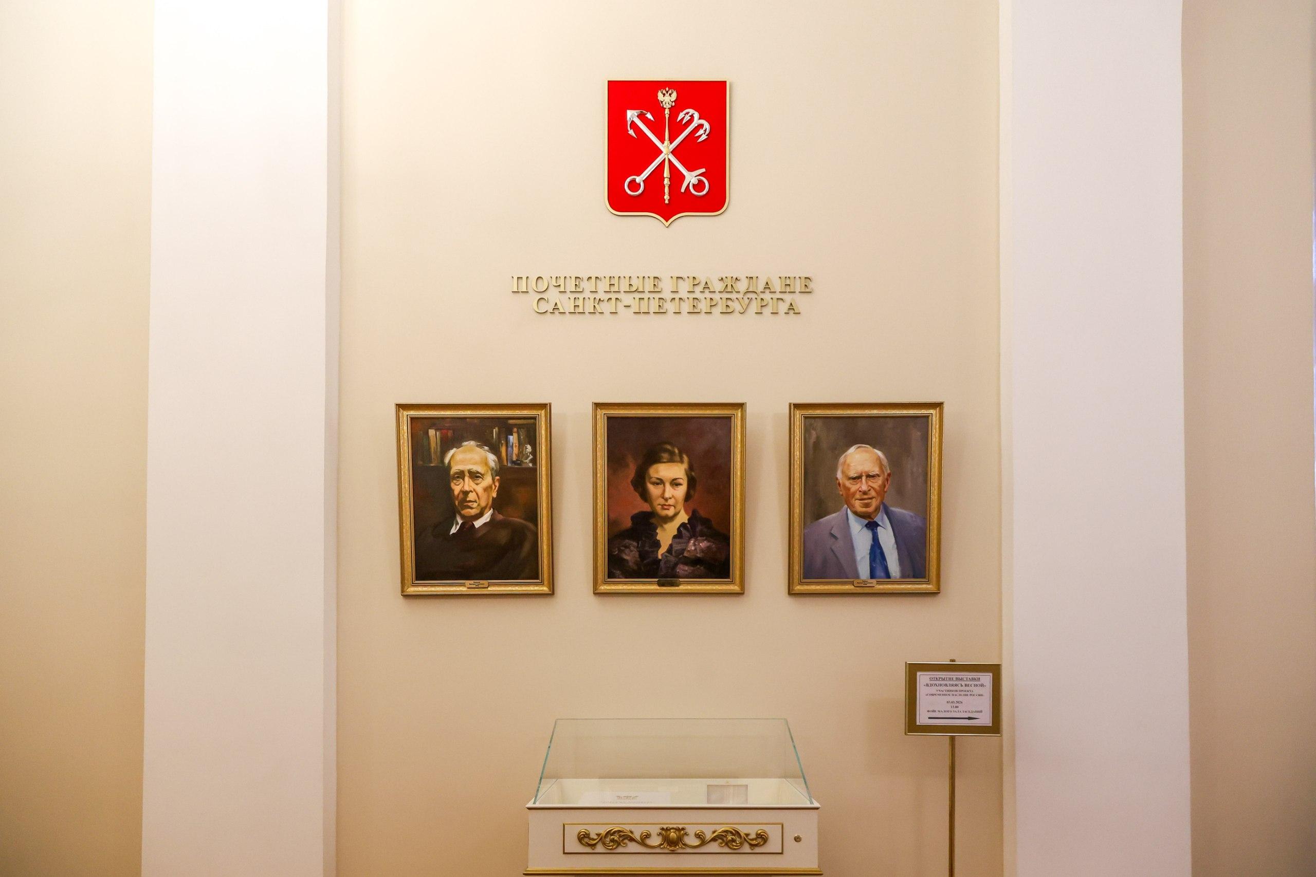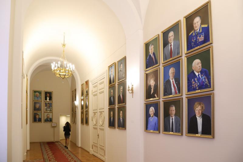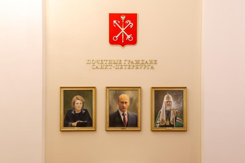 В Мариинском дворце завершается обновление галереи почетных граждан. Они теперь висят не в два ряда, а в три. За счёт этого освободилось ещё свободное место. Их, как рассказал на брифинге председатель ЗакСа Александр Бельский, оставили для тех, кто в будущем станет почетными гражданами, и для тех, кто стал таковыми до революции.