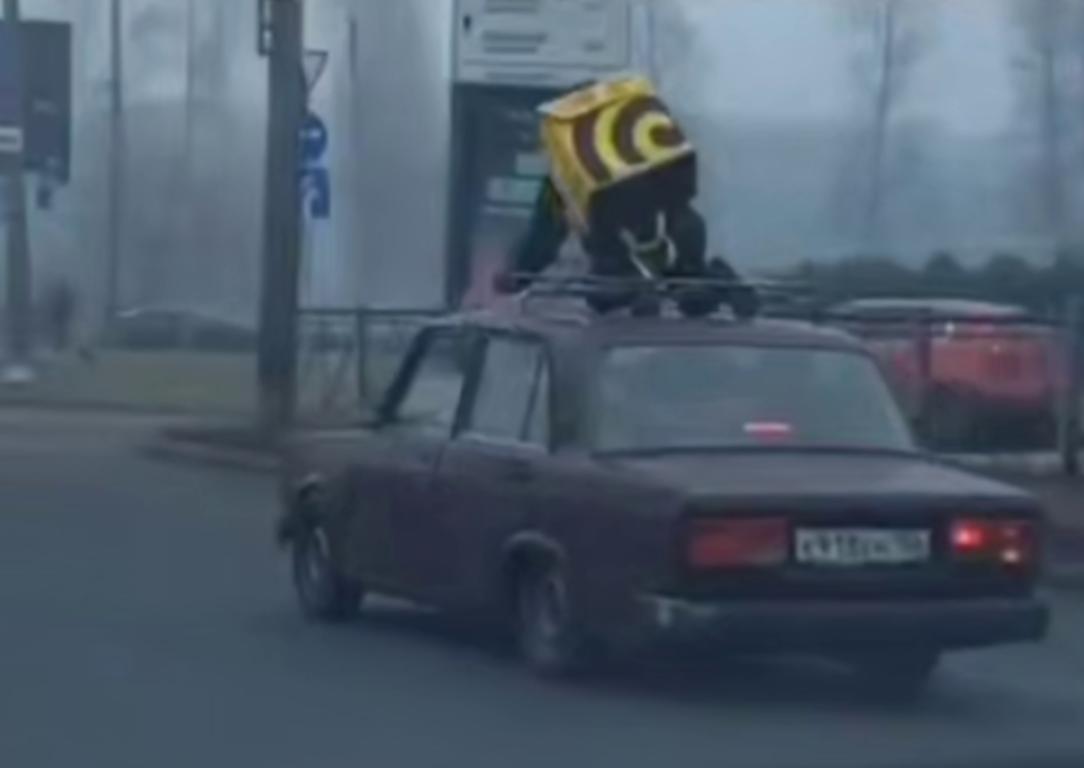Доставщик «Яндекса» прокатился на крыше авто в Петербурге