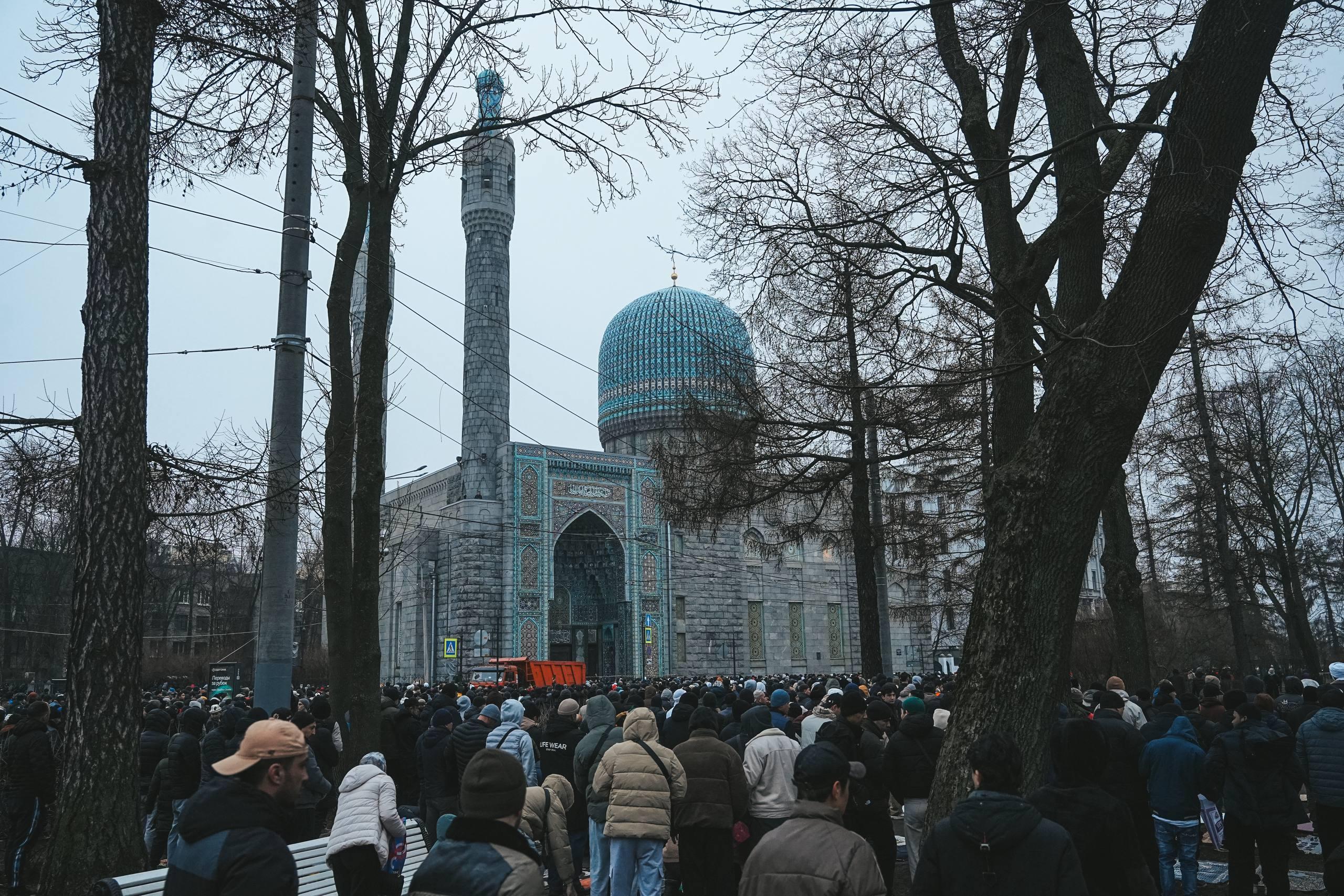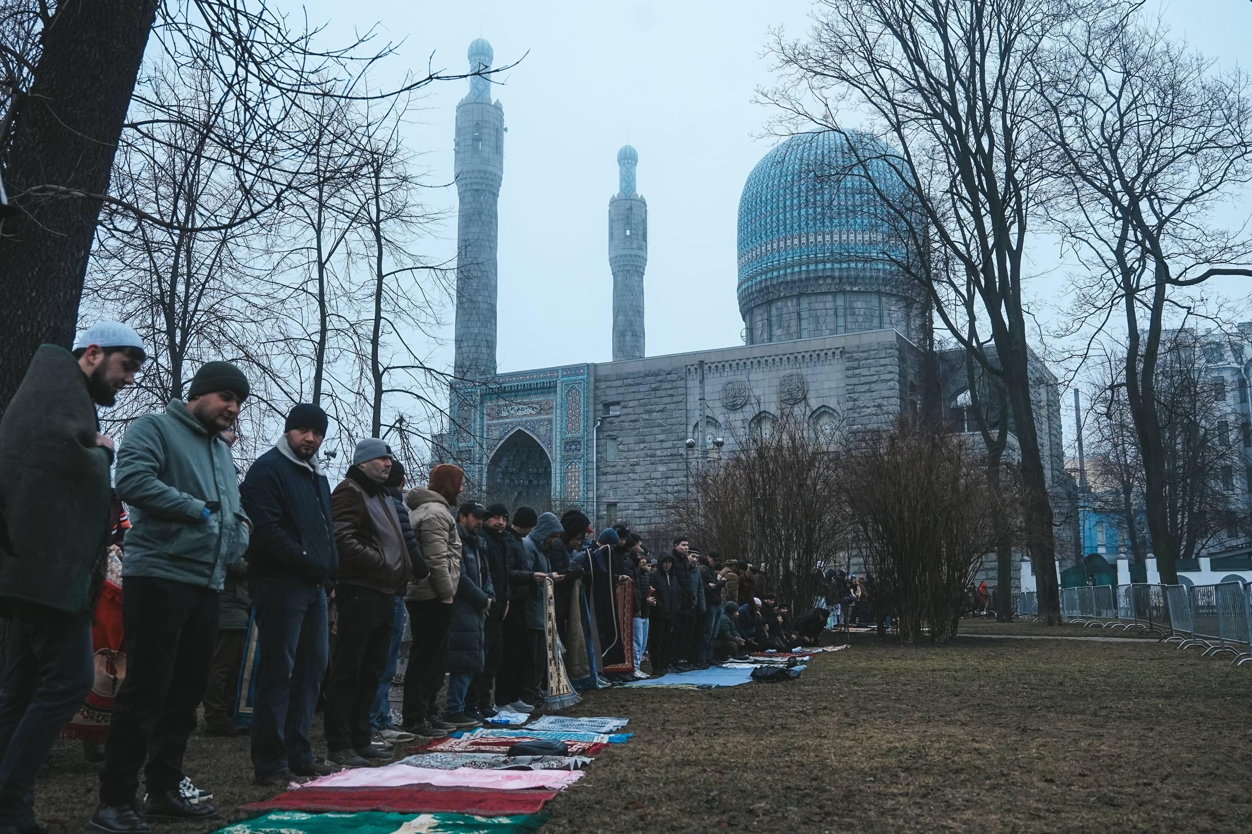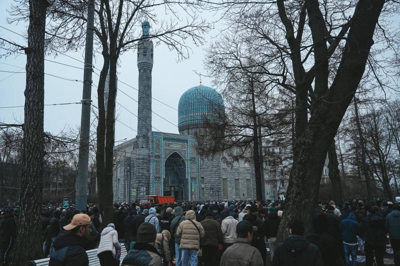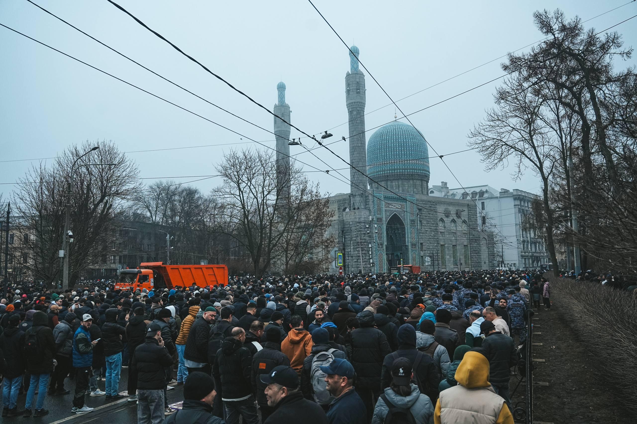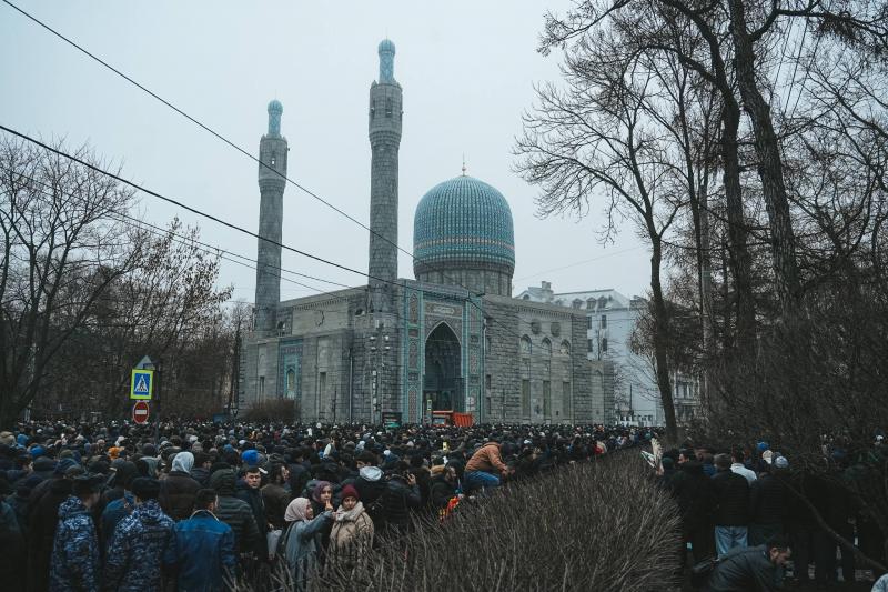 В Петербурге утром 20 марта мусульмане собрались на молитву в честь праздника Ураза-байрам.
