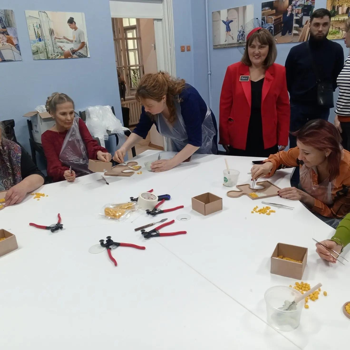 Неповторимую атмосферу стиля и элегантности на мероприятии создали организаторы – девушки в изящных шапочках с вуалями. Как они сами скромно признались, такой образ был выбран не только ради красоты: он помогал сразу отличить организаторов от гостей. Благодаря этому команда могла оперативно подсказать, где проходит мастер‑класс, где можно перекусить, и помочь сориентироваться в пространстве. Внимание гостей привлекала ярмарка поделок, созданных подопечными и их родителями. Особой популярностью пользовался мастер‑класс по созданию логотипа организации из мозаики.