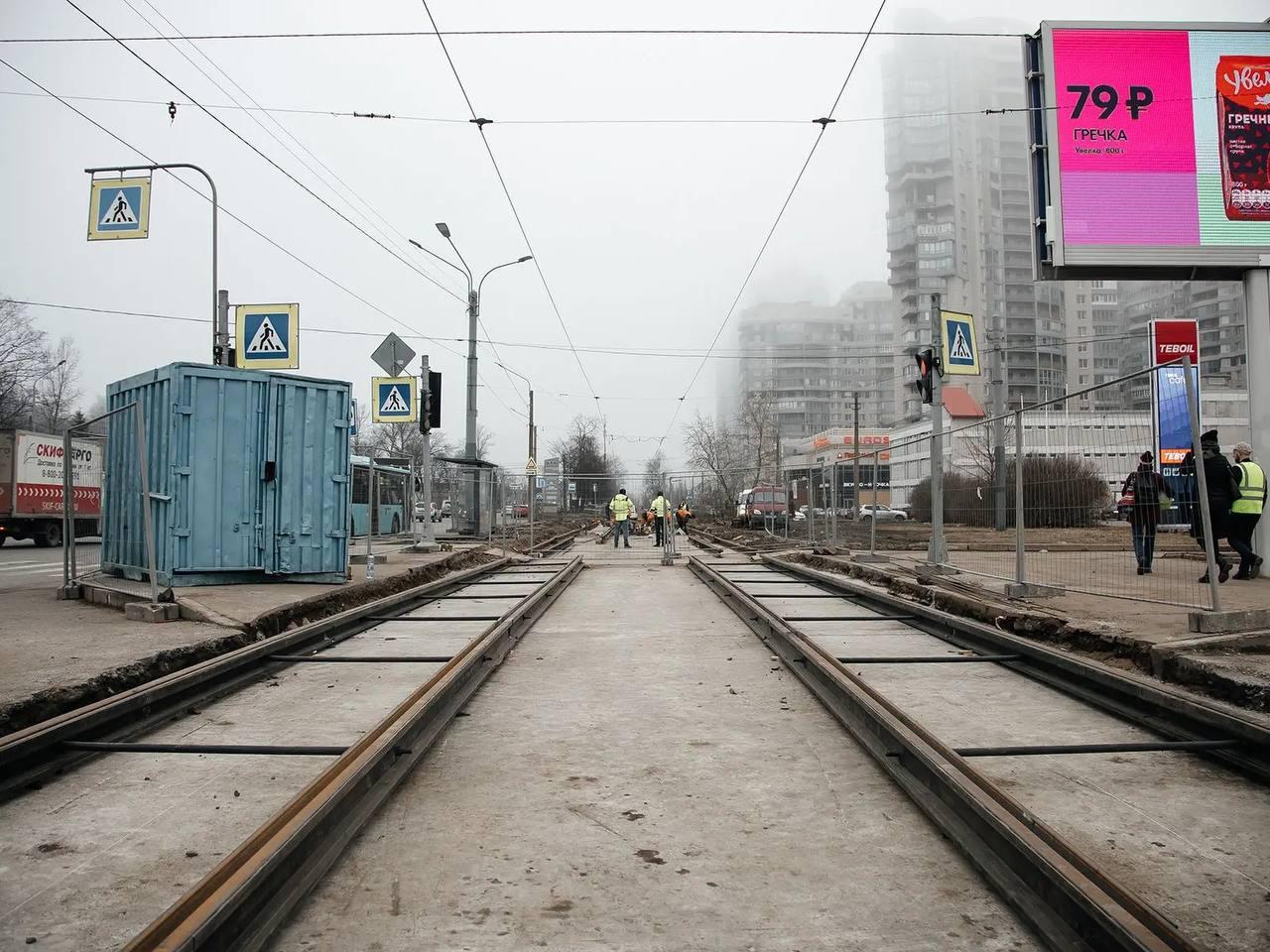 Петербуржцам показали, как проходит ремонт трамвайных путей на Выборгском шоссе