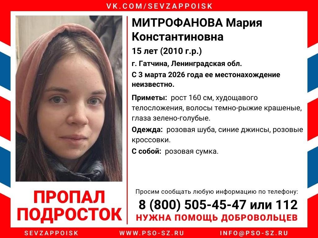 В Гатчине ищут 15-летнюю девочку. Мария не берет трубку с 3 марта, рассказали в поисково-спасательном отряде «Северо-Запад».