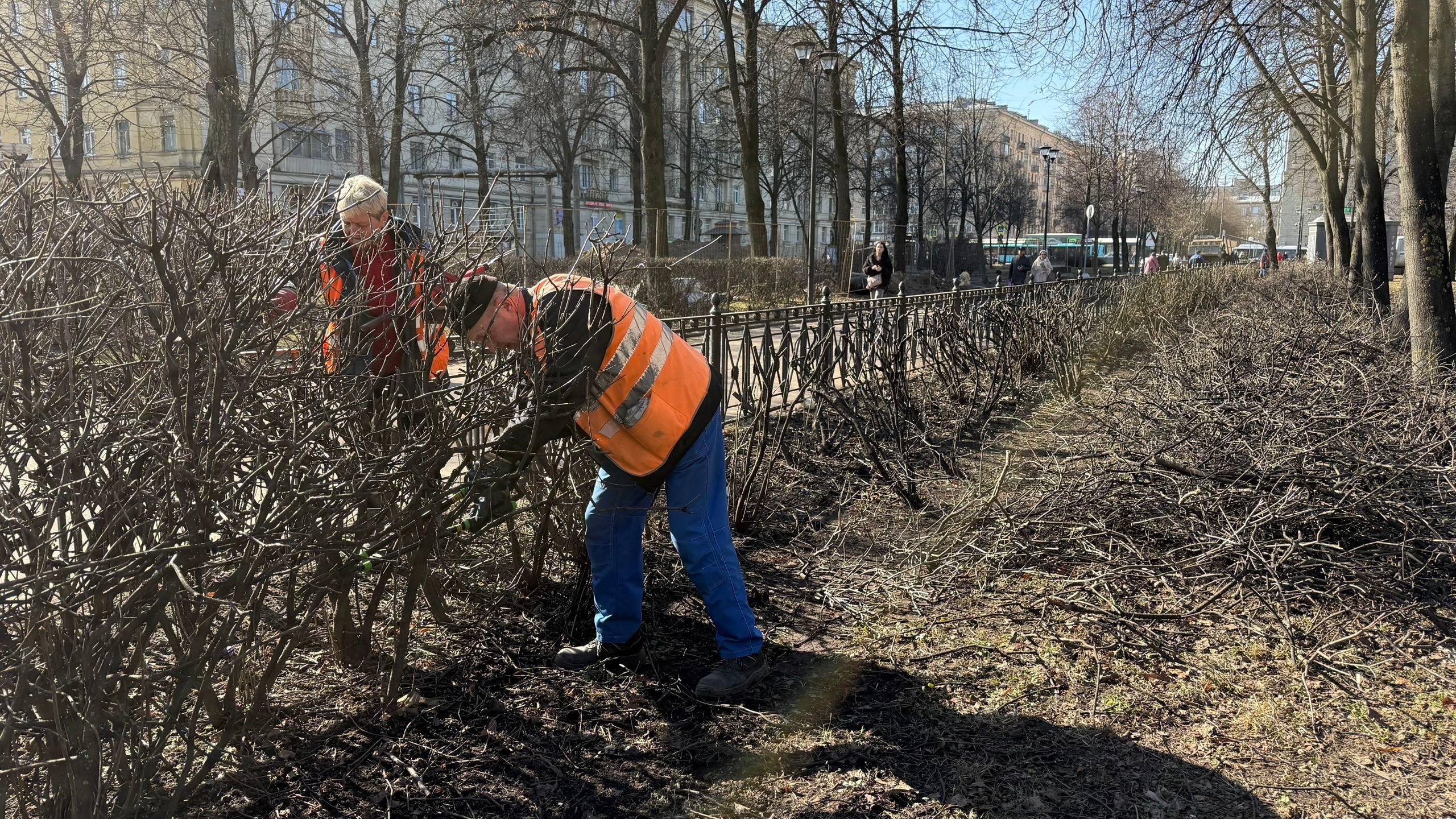 В Петербурге завершили стрижку живой изгороди из сирени в сквере «Южная роща»