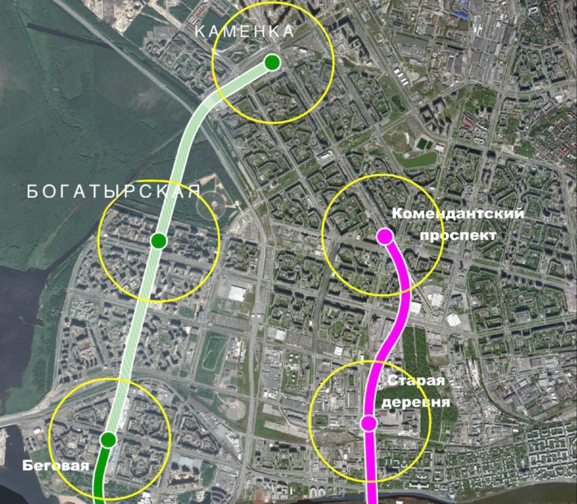 Также разработан участок под служебные помещения и под будущий мостовой пешеходный переход, который обеспечит смену направления пассажиропотока. Под землёй уже проложен двухпутный тоннель, который свяжет «Богатырскую» с действующей станцией «Беговая» и перспективной «Каменкой».