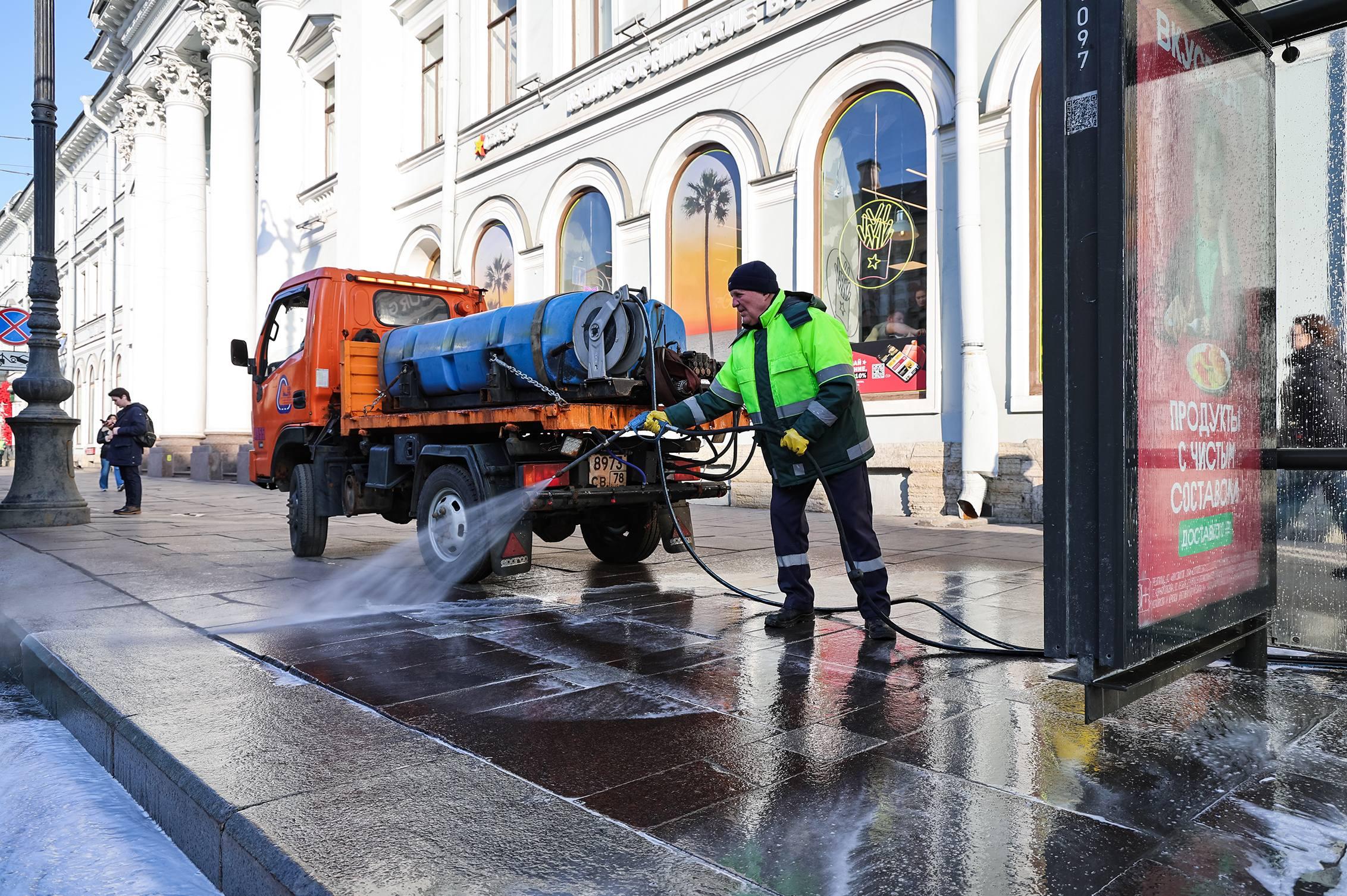 Сегодня улицы Петербурга убирают 713 машин и 1153 дворника