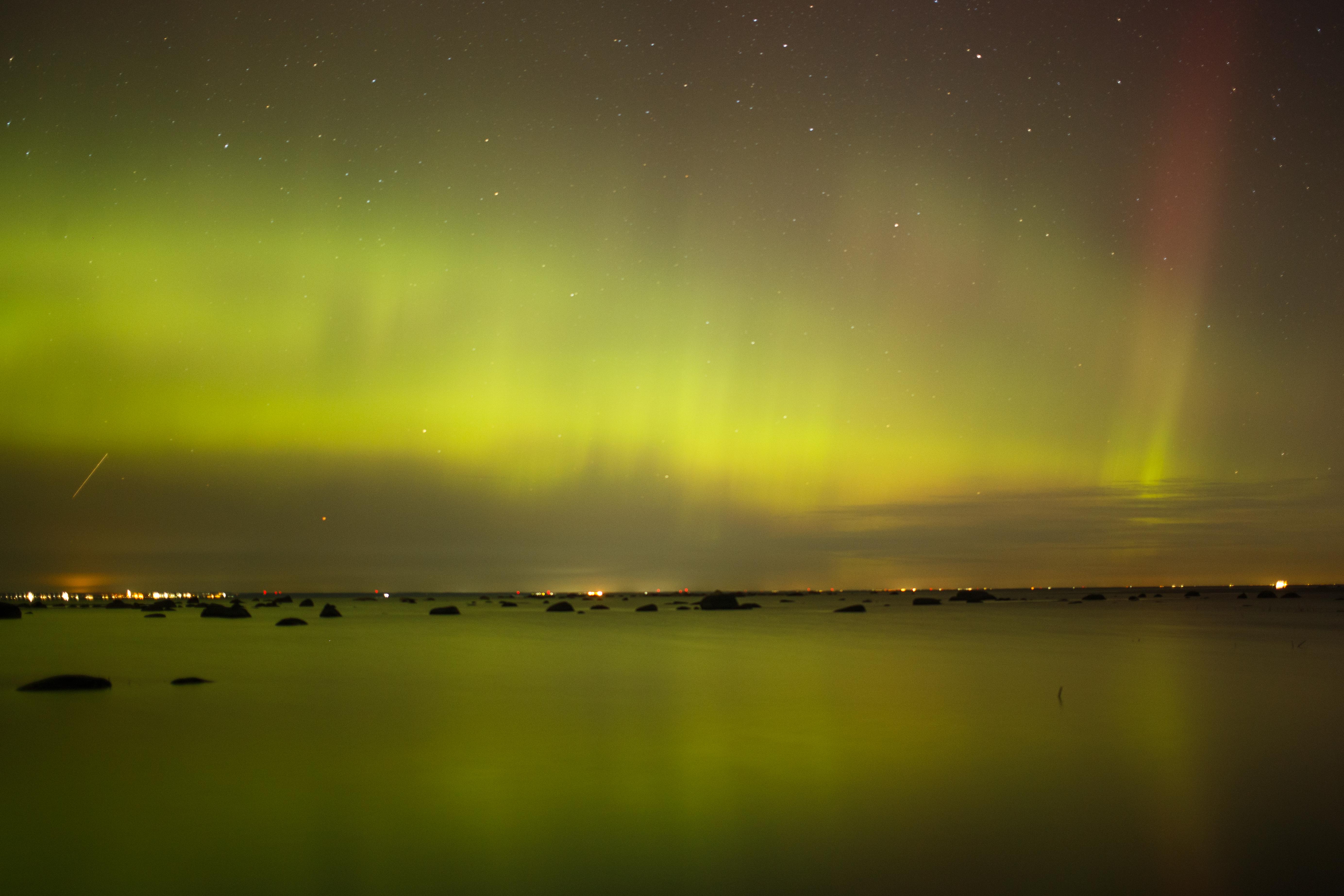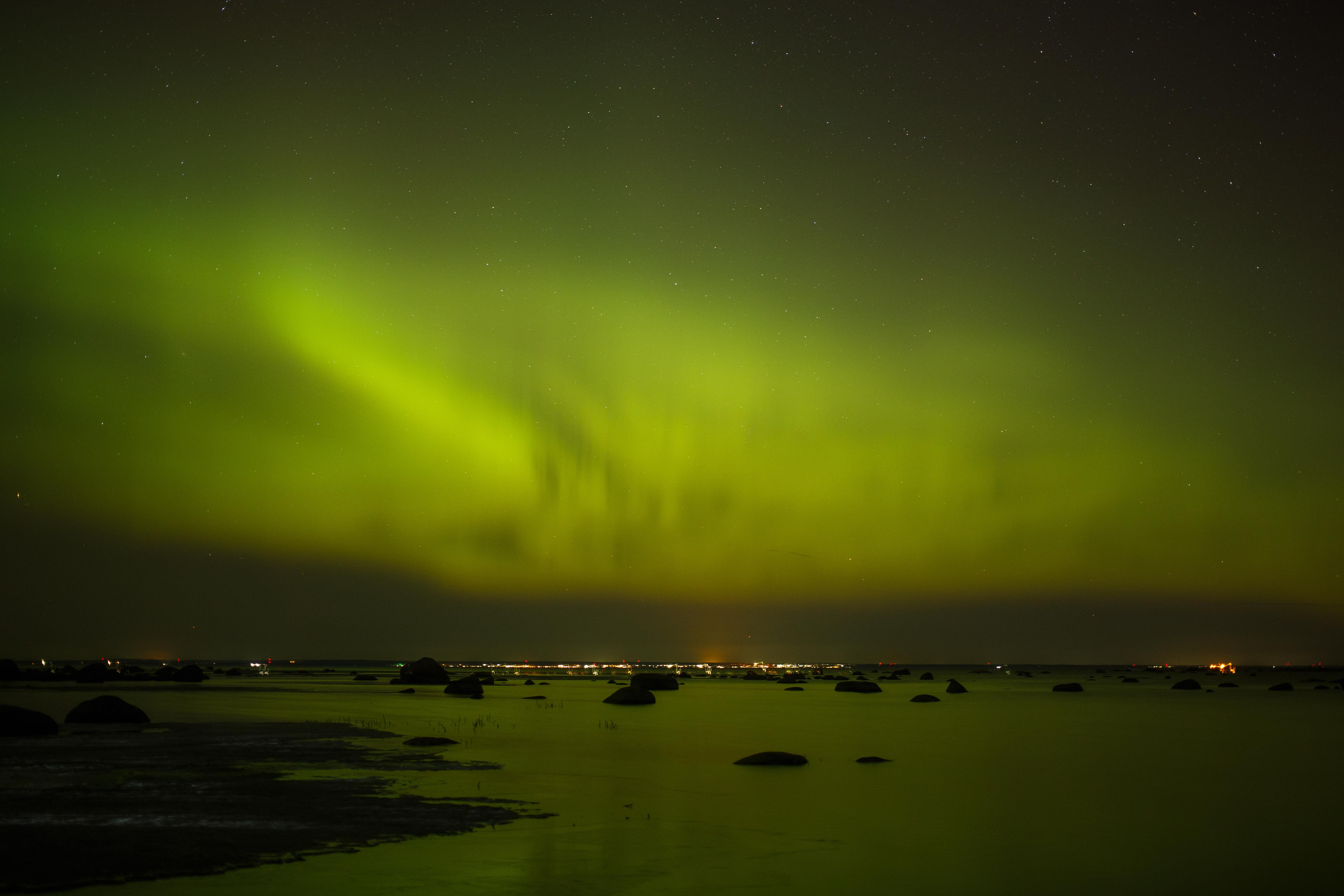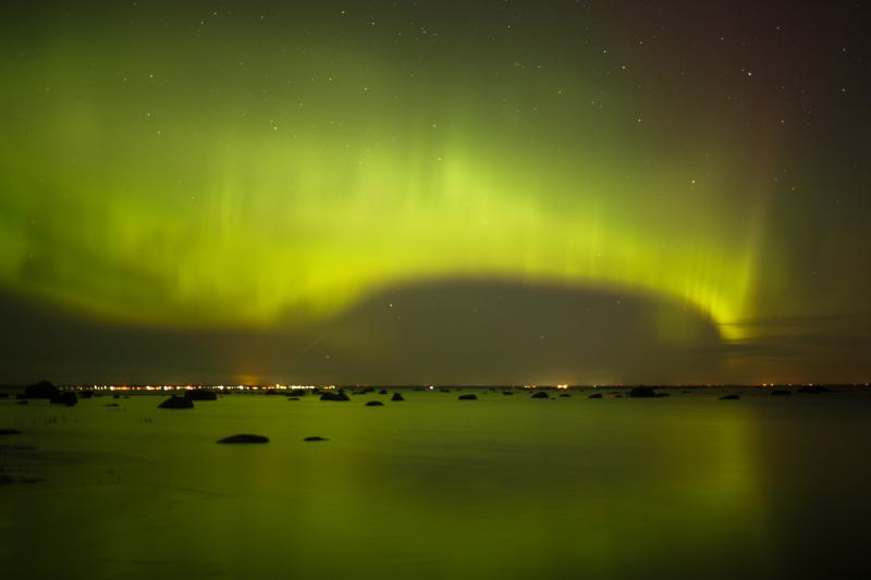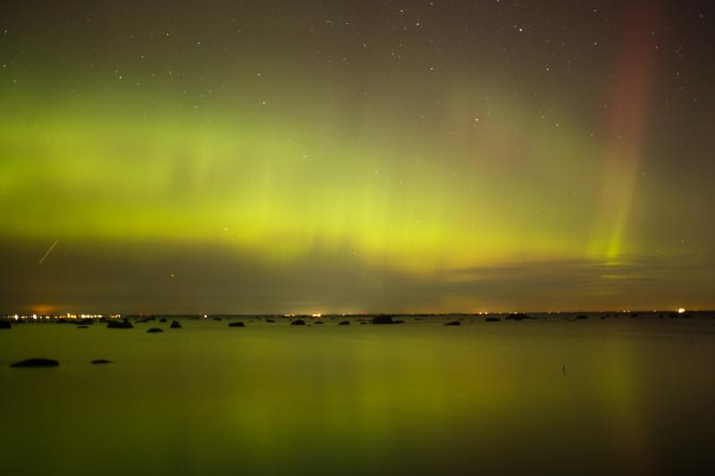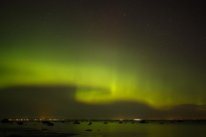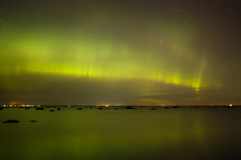 Минувшей ночью в небе над Ленинградской областью фотограф «Петербургского дневника» запечатлел северное сияние. Снимки необычного природного явления были сделаны в Ломоносовском районе у Шепелевского маяка.