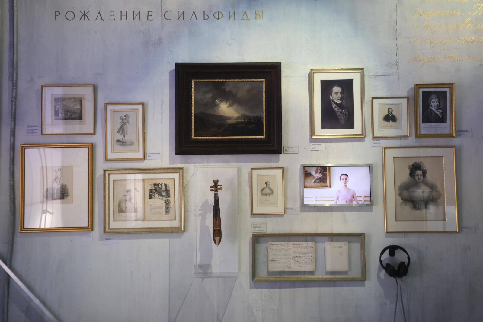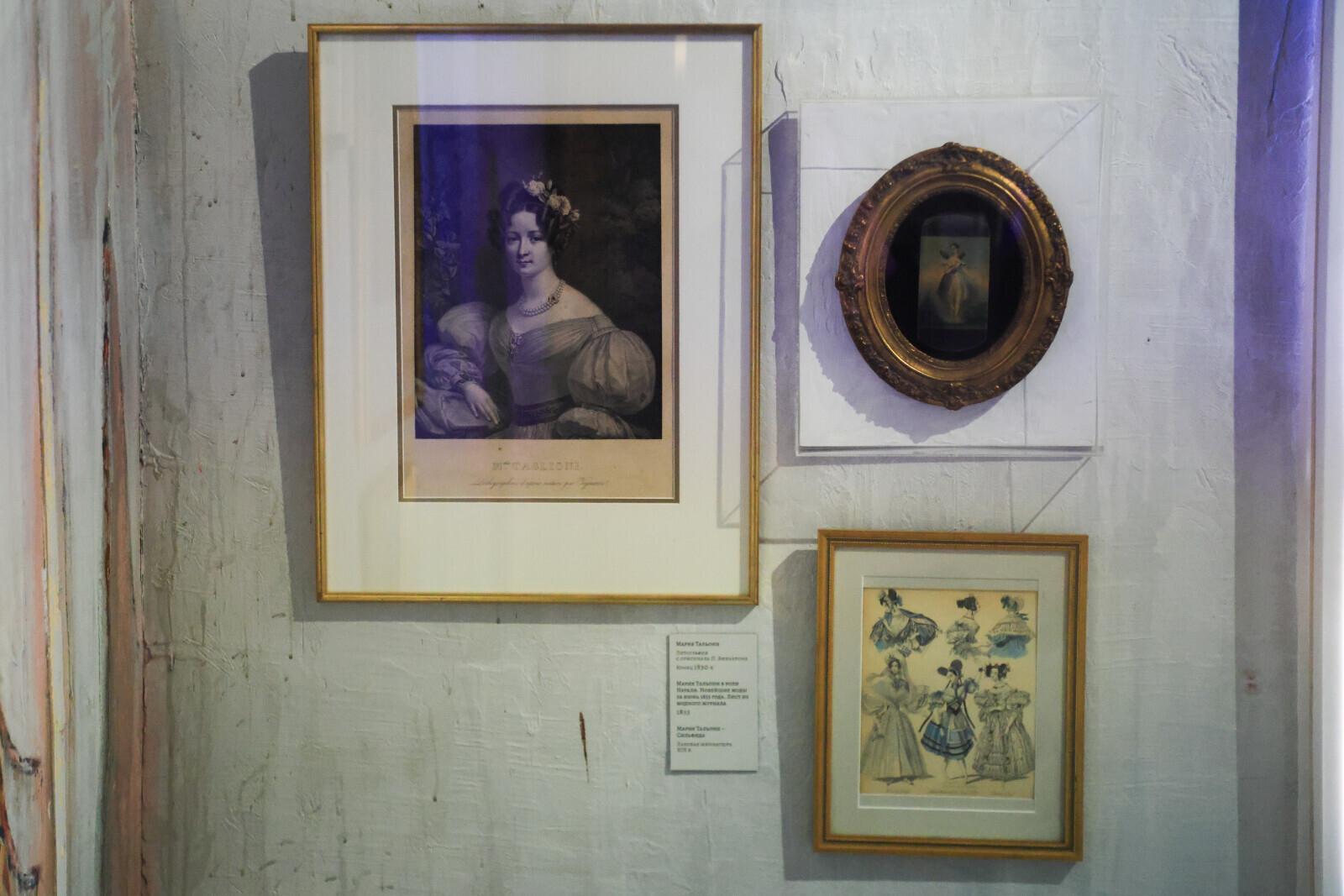 Рядом находится старинная рамка с фотографиями Жюля Перро и Марии Тальони. Как отмечает куратор, этот экспонат имеет забавную историю.
