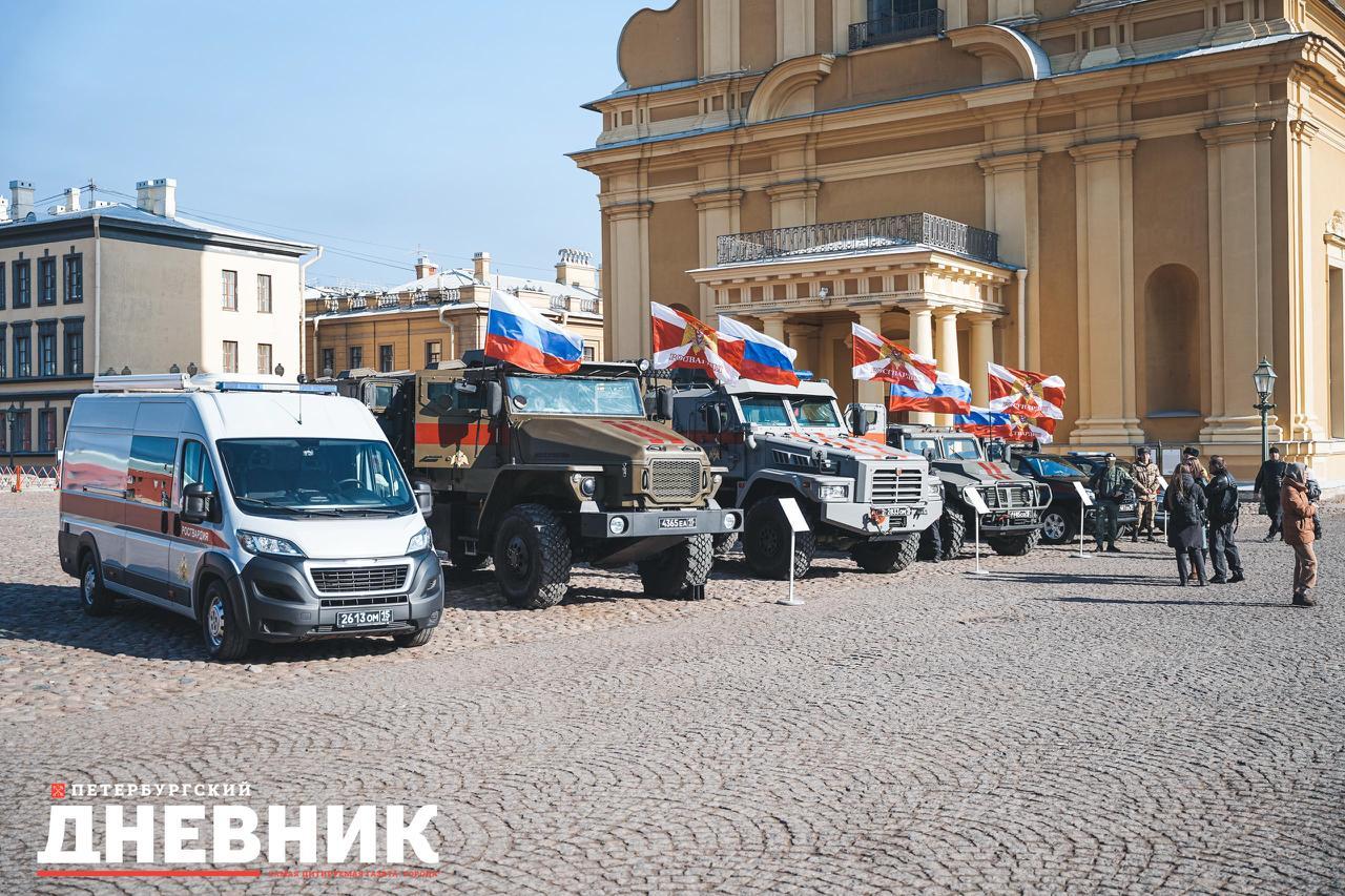 В Санкт-Петербурге состоялся праздничный автомобильный пробег, посвященный 10-летию Росгвардии и 215-й годовщине войск правопорядка. По улицам и набережным Северной столицы проехала колонна боевой техники в сопровождении экипажей военной автомобильной инспекции.