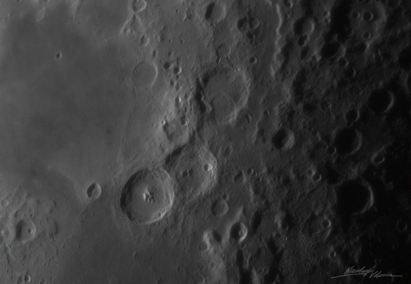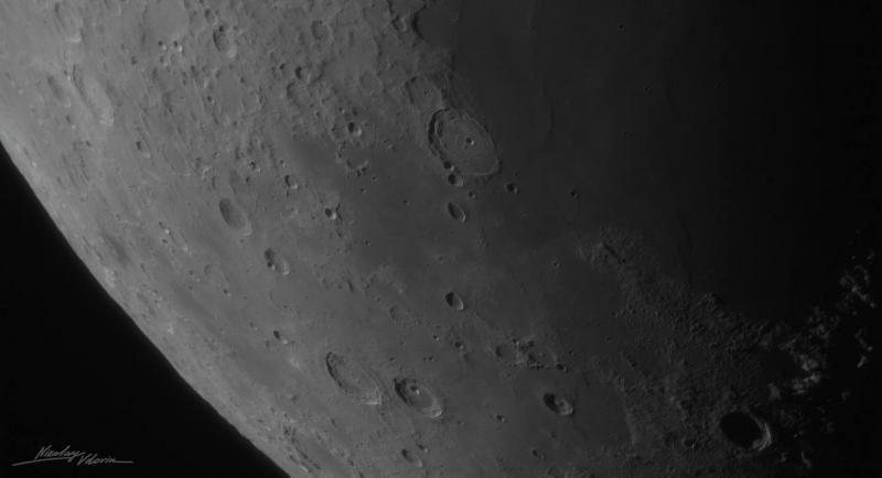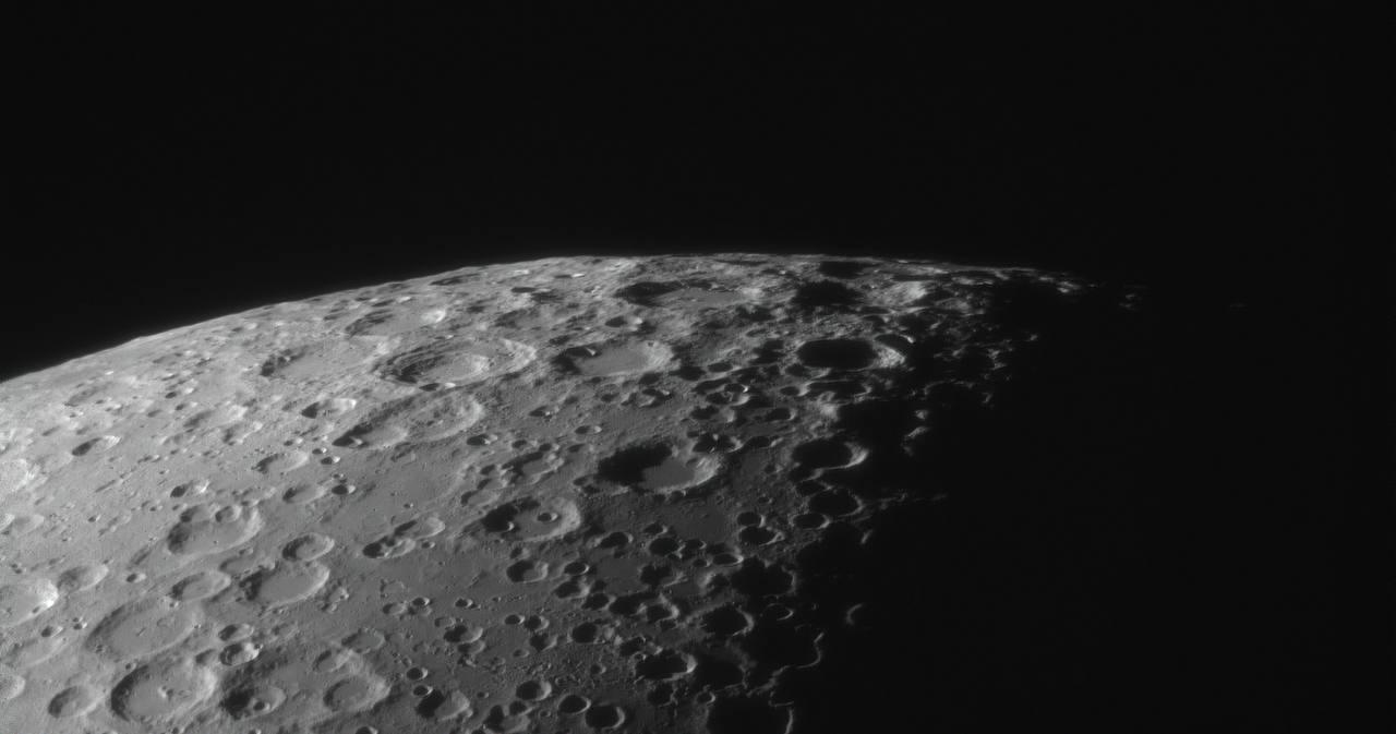 Астрофотограф запечатлел на уникальных снимках Северный регион Луны, группу кратеров у Моря Нектара (Теофил, Кирилл и Катарина), а также линию терминатора – границу света и тени.