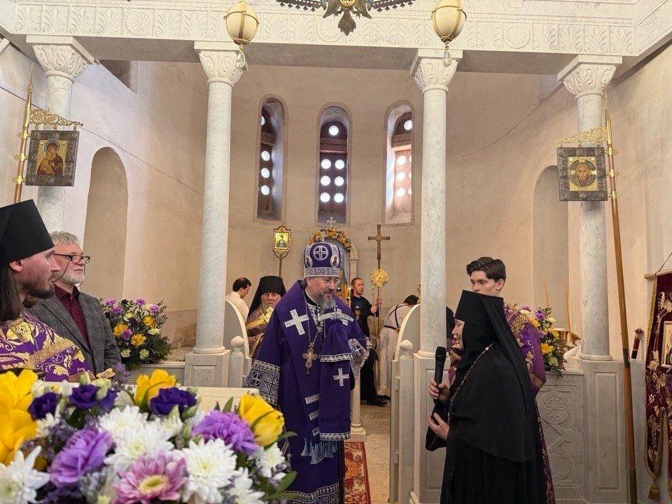 Игумения Евфросиния, поблагодарив присутствующих за общую молитву, рассказала о значимом событии: 17 января в Иерусалиме патриарх Феофил III освятил копию Гефсиманской плащаницы, изготовленную специально для обители Фондом Андрея Первозванного. Принесение святыни в монастырь ожидается к престольному празднику – Успению Пресвятой Богородицы. Матушка отметила, что молитвенная преемственность в этих стенах не прерывается уже более девяти веков, помогая людям находить ответы на сокровенные вопросы о смысле жизни и любви Божией.