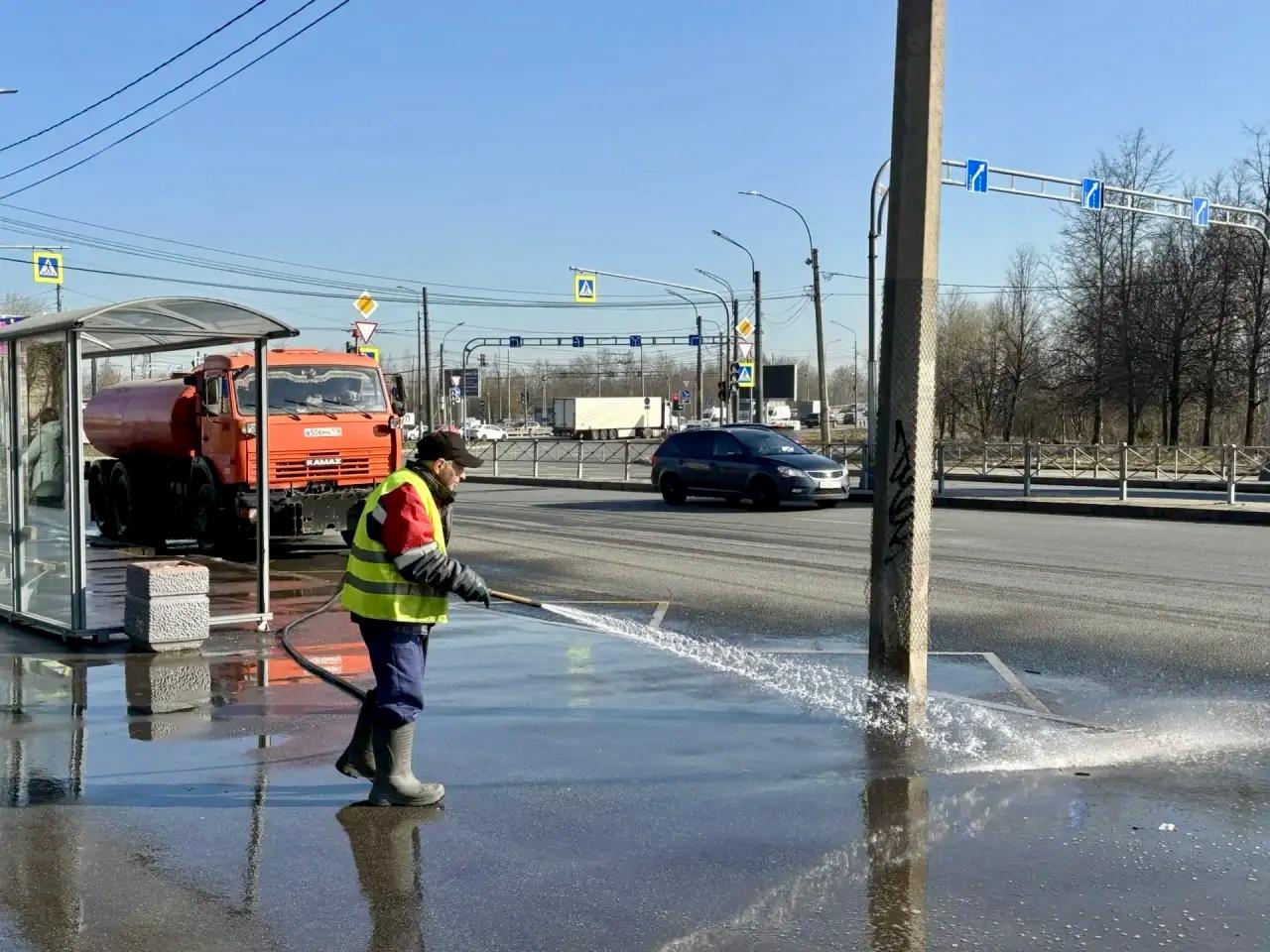 В Петербурге дорожные и коммунальные службы еще до начала месячника по благоустройству вышли на масштабный объем использования воды при замывке проезжей части и тротуаров.