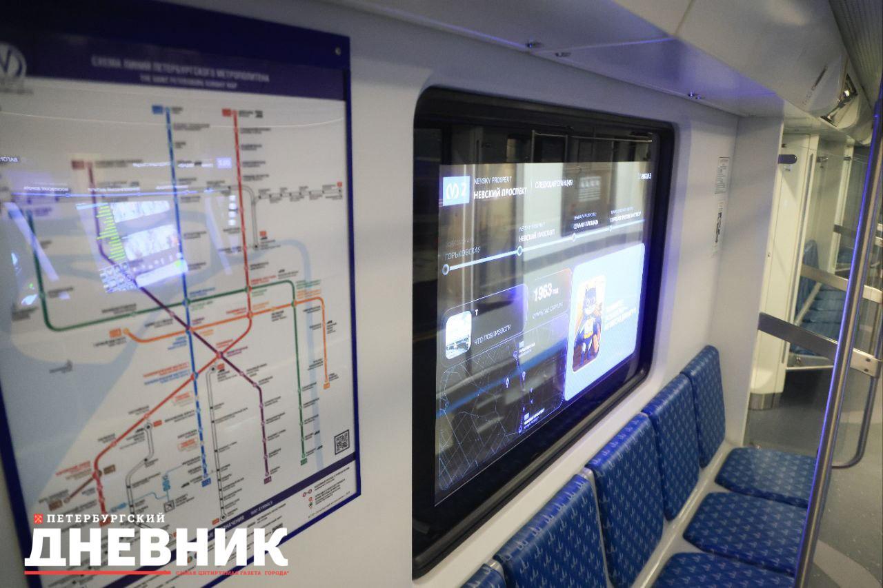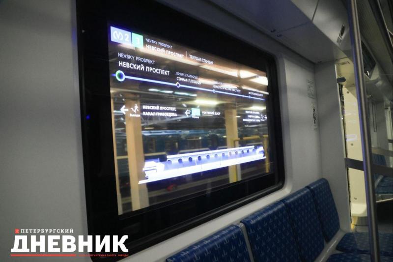 На «синюю» линию петербургского метрополитена вышли четыре новых состава «Балтиец-2». Главным нововведением стал встроенный экран в окне поезда. Он размещён в третьем вагоне и показывает пассажирам информацию, инфографику и исторический контент о городе.