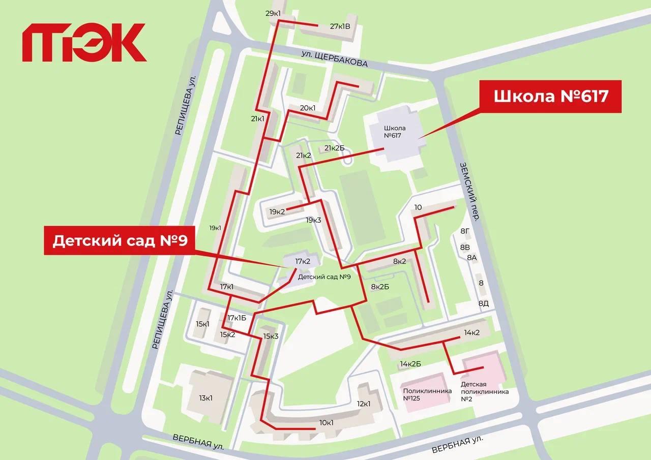 Проект повысит надежность теплоснабжения 20 зданий, включая 15 жилых домов и лечебное учреждение. Также значимым этапом станет прокладка трубопроводов на территории детского сада № 9 и школы № 617 Приморского района.