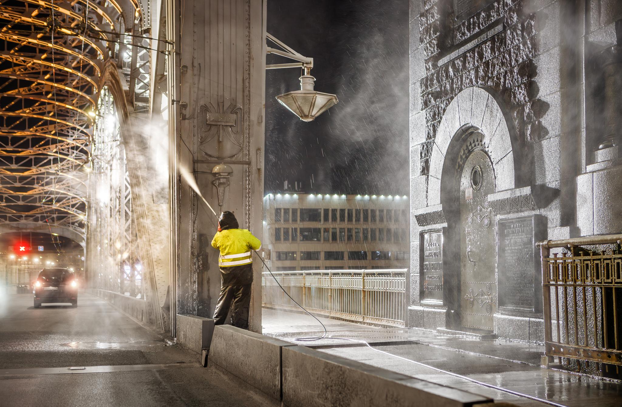 Работы ведутся круглосуточно. Главное условие для их проведения – плюсовая среднесуточная температура воздуха. До наступления заморозков следующей зимы объекты будут промыты несколько раз. Специалисты «Мостотреста» уже успели очистить около 100 тысяч квадратных метров поверхностей.