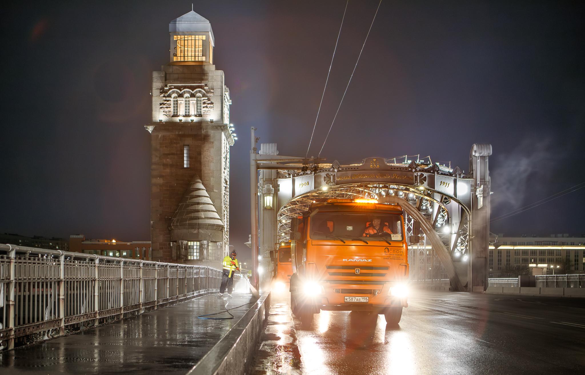 Первыми водные процедуры прошли Биржевой, Большеохтинский, Благовещенский и Литейный мосты, а также Английская, Адмиралтейская, Дворцовая набережные и набережная Кутузова. В ближайшие дни специалисты запланировали помывку Дворцового, Кантемировского, Гренадерского мостов и Синопской набережной.