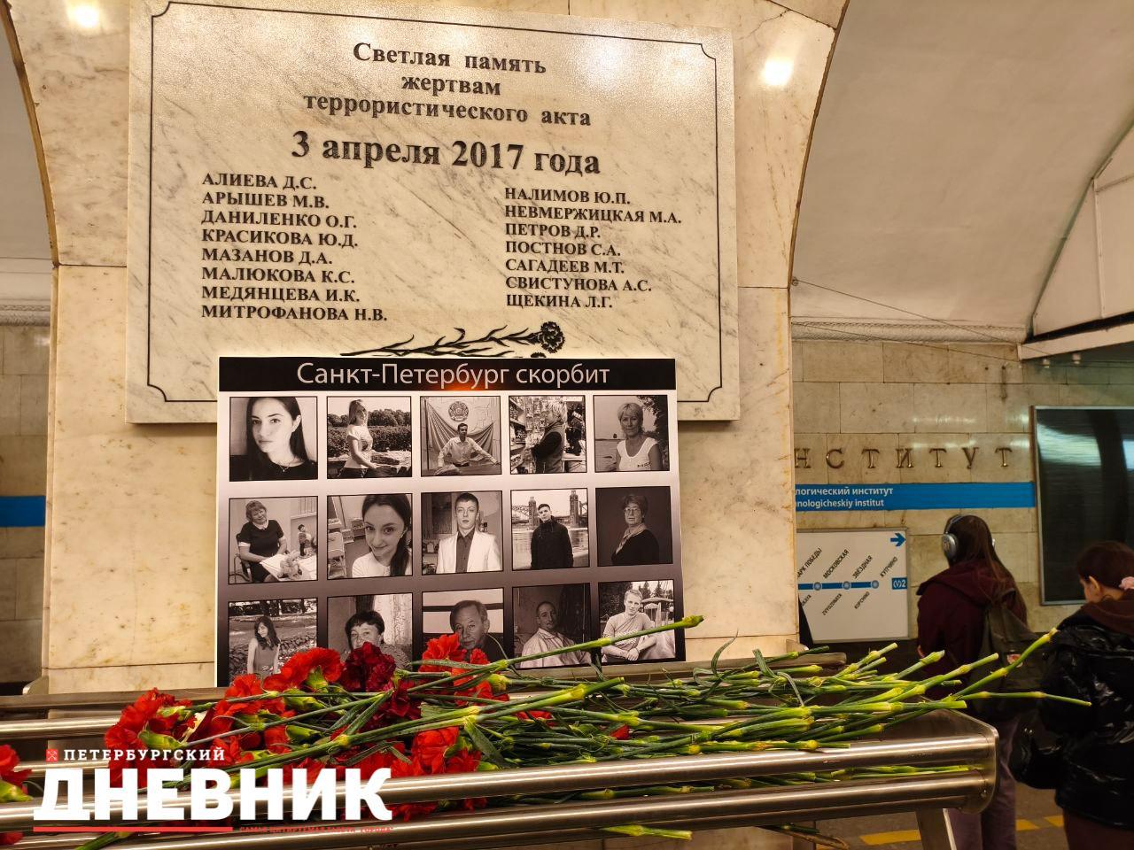 Напомним, мемориальная доска была установлена в вестибюле станции в 2020 году – сегодня петербуржцы возлагают к ней цветы. Также в Троицком соборе будет отслужена панихида по погибшим.