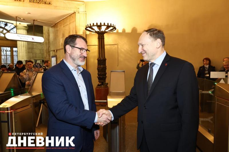 Первыми новые жетоны опустили в турникет начальник метрополитена Евгений Козин и директор Кировского завода Сергей Серебряков. Сразу после этого они поступили в продажу.