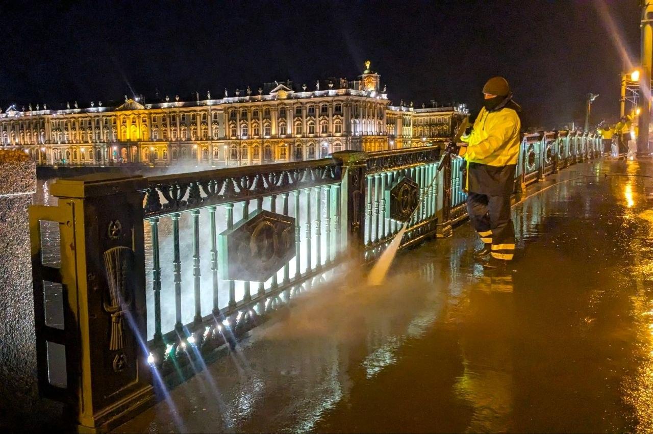 Специалисты СПб ГБУ «Мостотрест» очистили Дворцовый мост аппаратом высокого давления, работы прошли в ночь с 2 на 3 апреля, сообщили в пресс-службе учреждения.