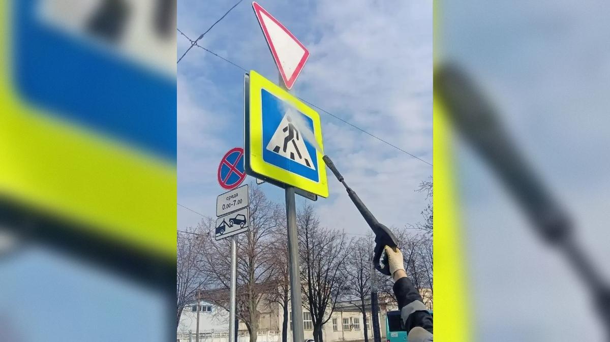 В Петербурге начали очищать технические средства организации дорожного движения от грязи
